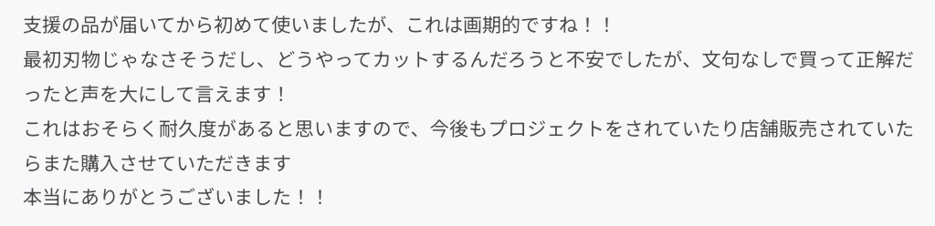 その手軽さ・切れ味から、これまでに4,500名を超える方々にご支援いただきました。