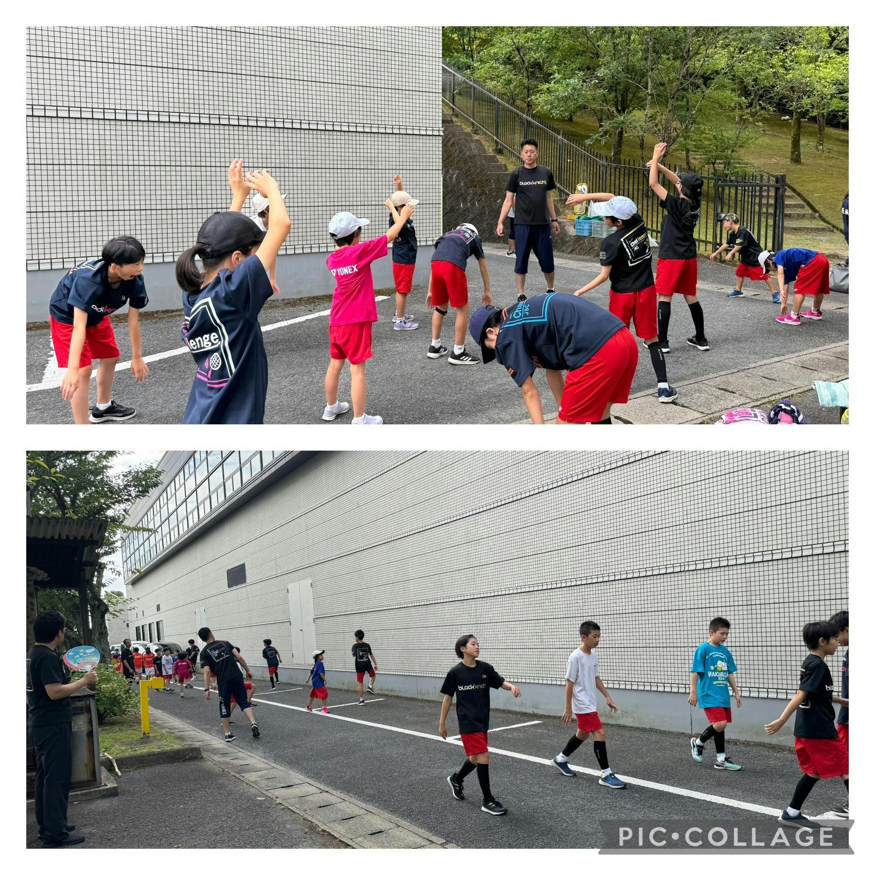 いよいよ始まります。決勝トーナメント戦!木城コーチ、河村コーチ指導の「ダイナミックストレッチ」試合前のアップをストレッチから念入りにおこないました。ひと汗かいて準備万端!