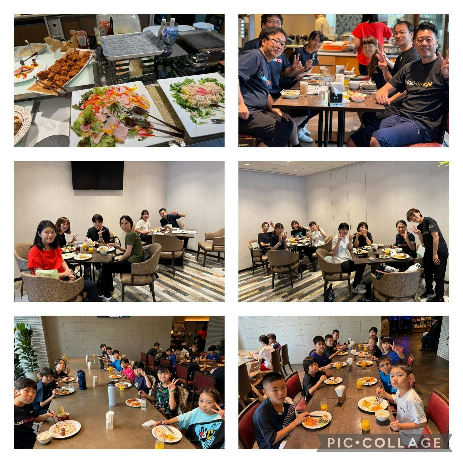いただきまーす!夕食はバイキングで、何度もおかわりをしながらお腹いっぱい食べました。たこ焼きが大人気でしたー。明日に備えて早めに食べて早めに寝ます。