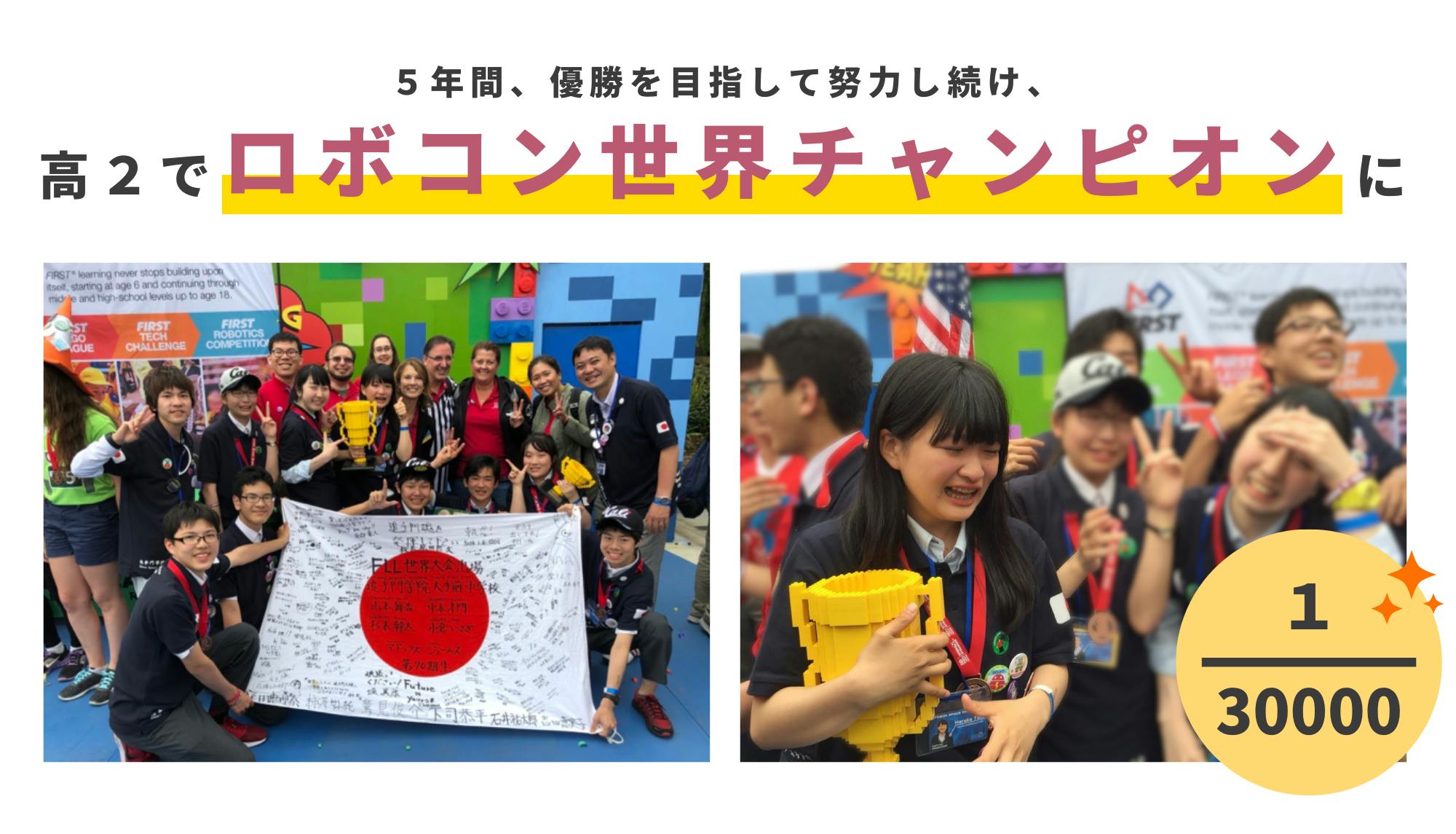 私は小さい頃から飽き性で、どんな習い事や勉強もなかなか続きませんでした。しかし、中学一年生の時にプログラミング教育と出会い、初めて一つのことに没頭する楽しさを知り「やり抜く力 "grit"」を身につけることができました。