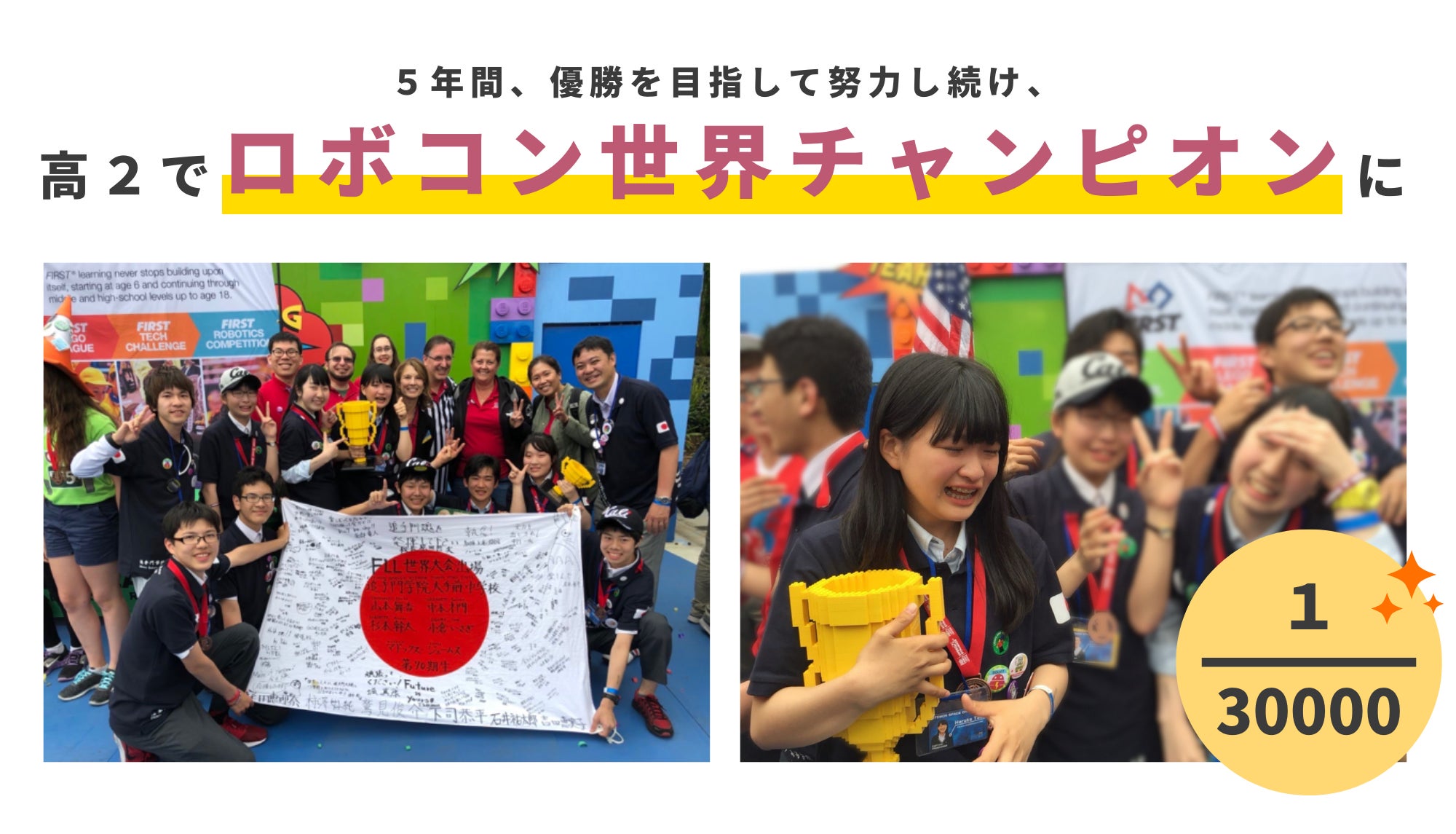 私は小さい頃から飽き性で、どんな習い事や勉強もなかなか続きませんでした。しかし、中学一年生の時にプログラミング教育と出会い、初めて一つのことに没頭する楽しさを知り「やり抜く力 "grit"」を身につけることができました。