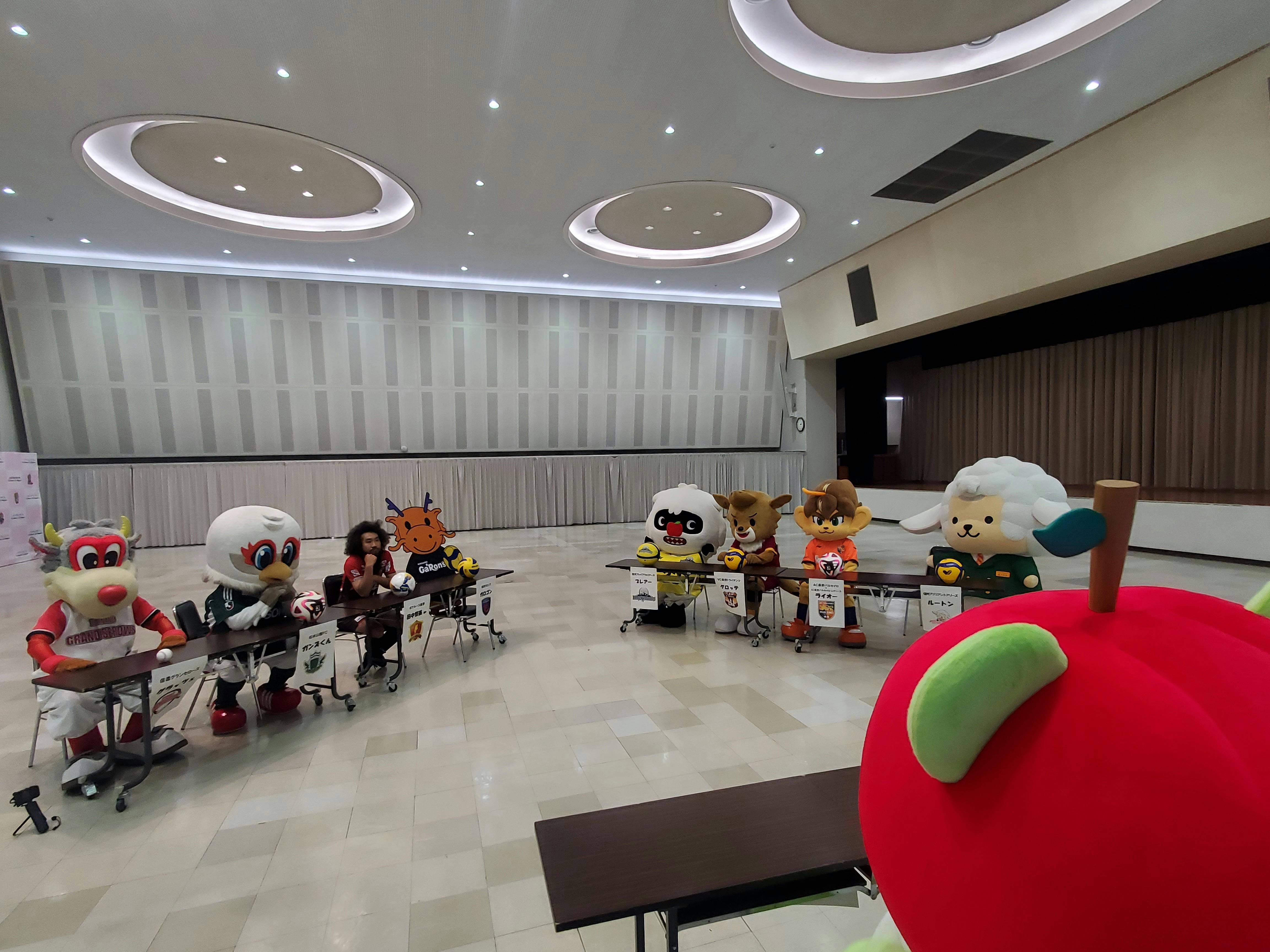 アルクマは県内にあるプロスポーツチームのキャラクターたちに相談をもちかけ、