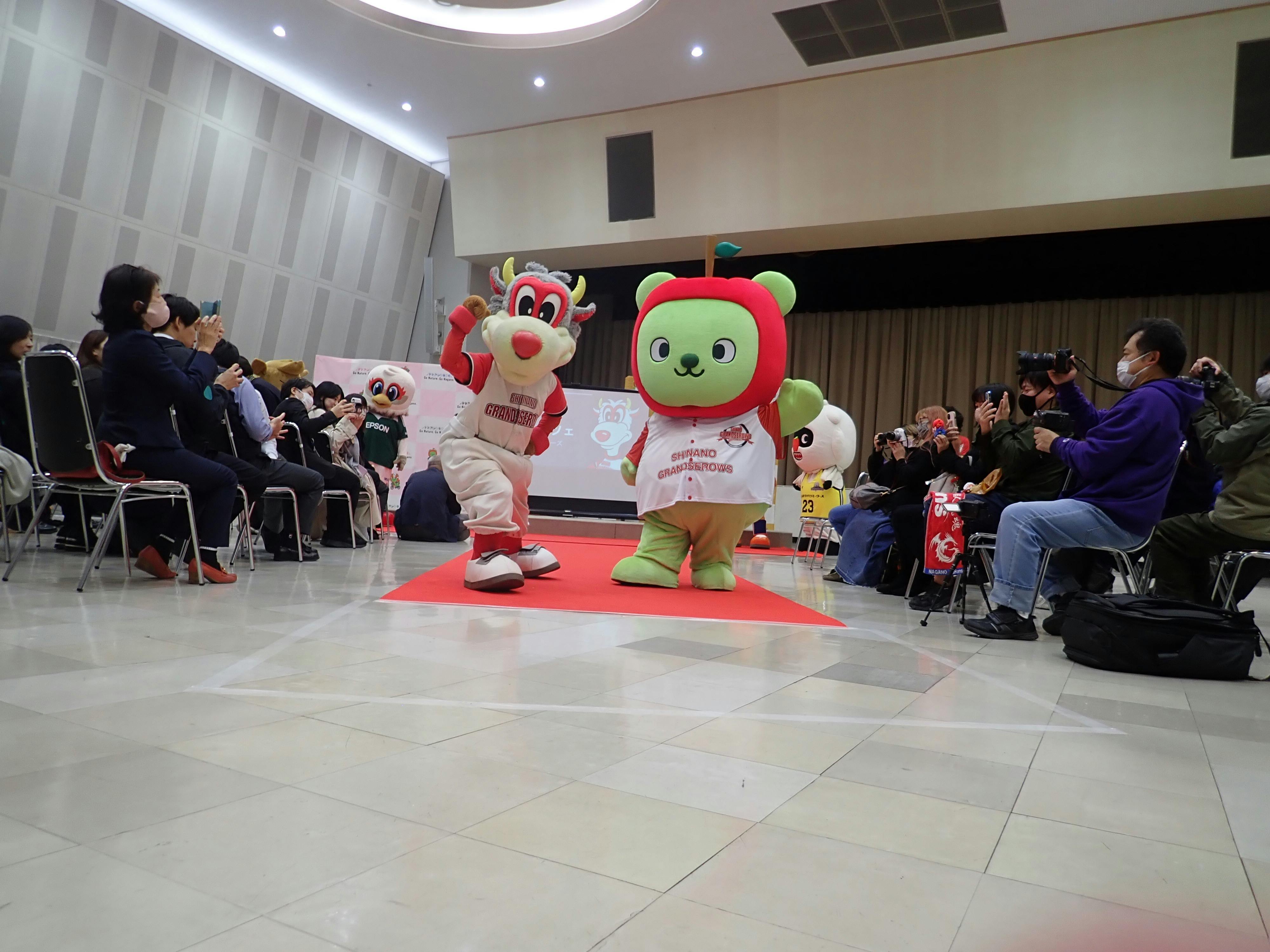 お披露目記者発表では、長野県のスポーツを盛り上げるための応援団名の発表も行いました。応援団名はみなさんに応募いただいた中から、「信州アルクマスポーツ応援団(通称:アルスポ)」に決定しました。