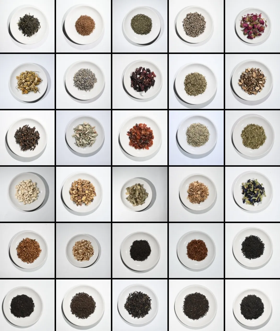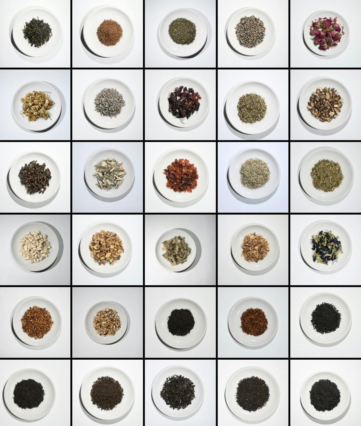 ずらりと並ぶ紅茶とハーブ(30種類)