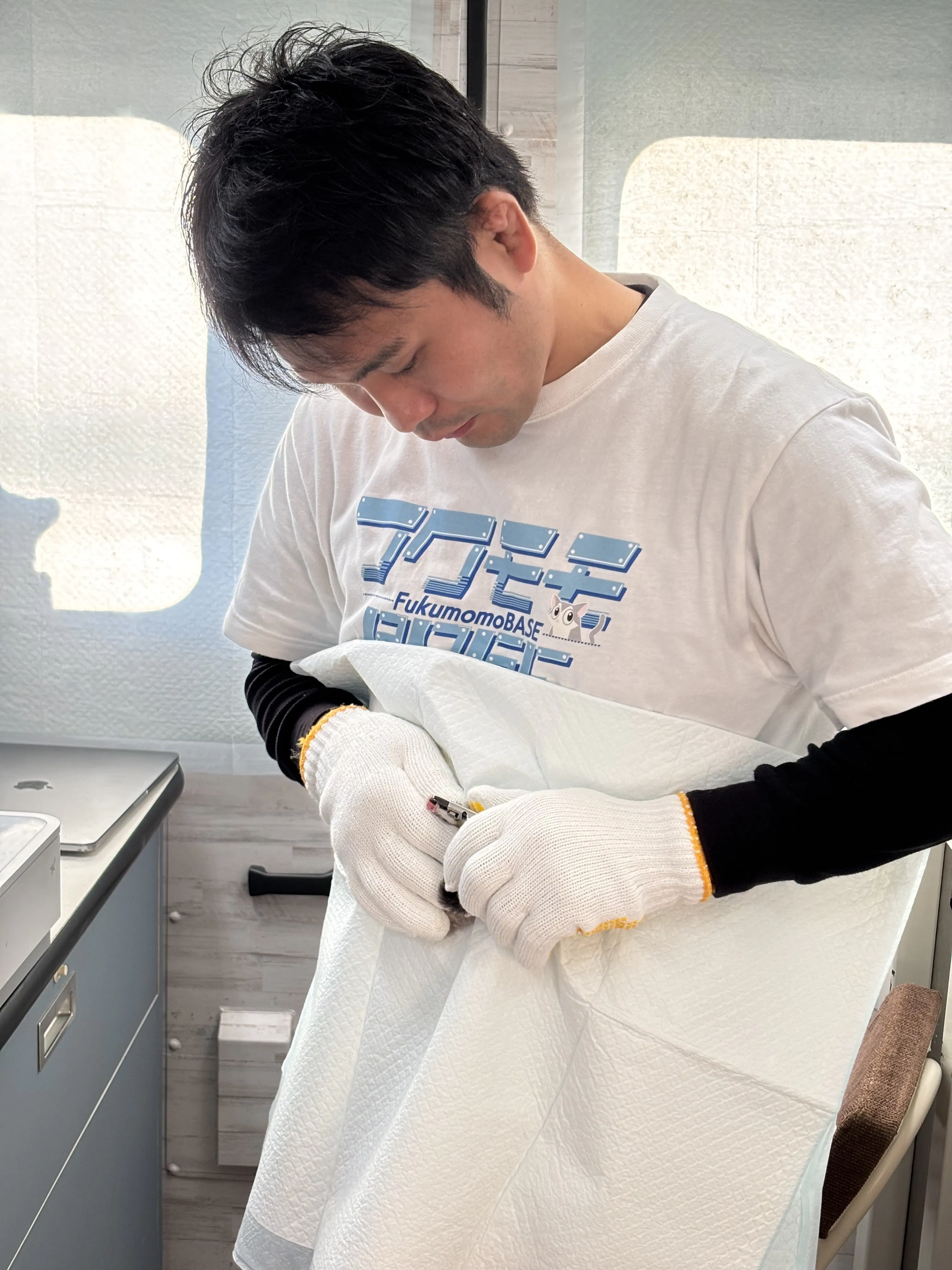 〜フクロモモンガ専用トリミングカーで爪切りをしている風景〜
