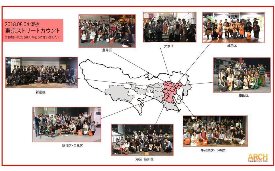 昨日の8月4日 深夜24:30から今朝の明け方まで、東京ストリートカウント 中心区(山手線が通っている区)を実施しました!