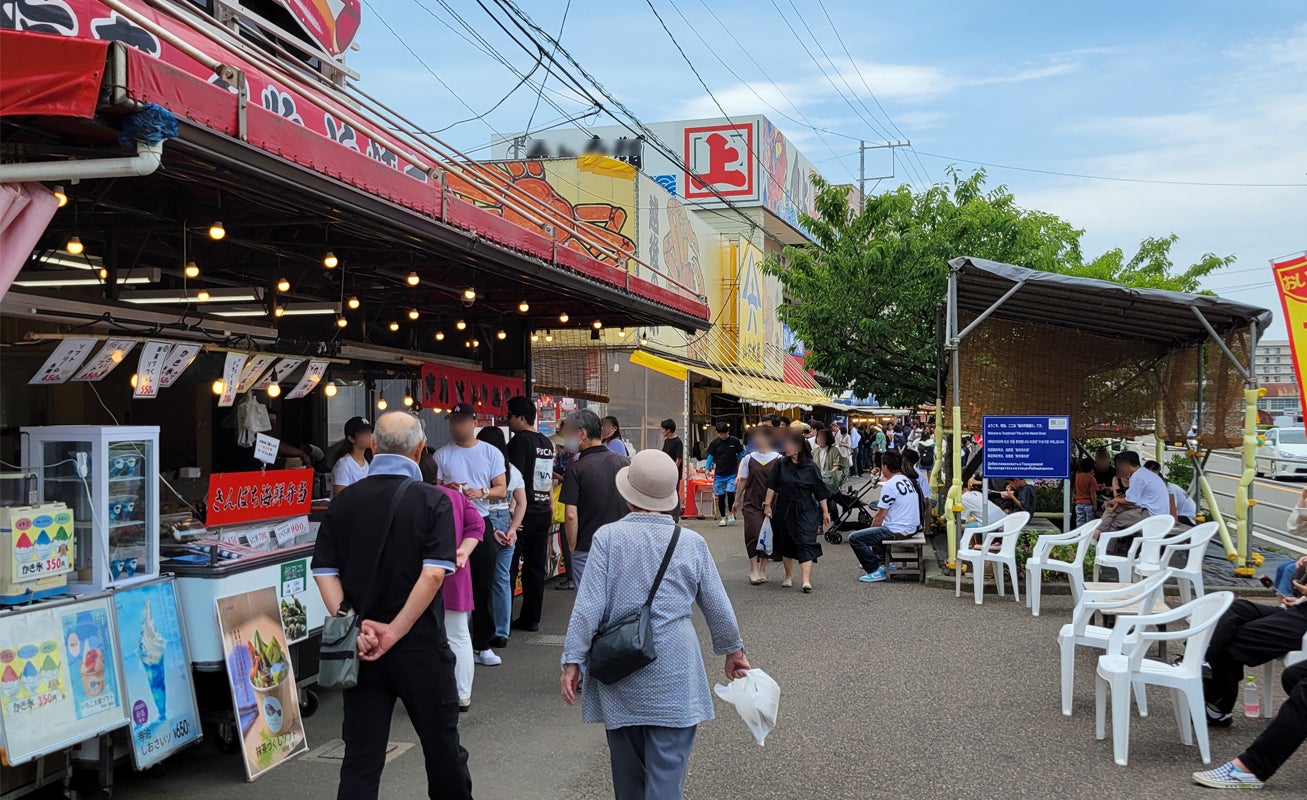 お店から近所の寺泊魚の市場通り(魚のアメ横)