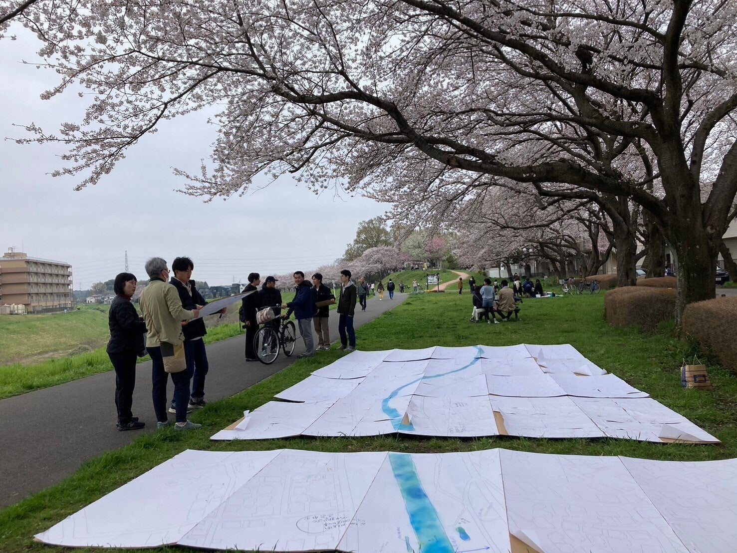 そこで、私たちが知らない運河の魅力や歴史を知るために、地域の人たちとの対話を通してそれらを9m×4mの一枚の大きな地図にまとめる「運河あつめ」という企画から活動をはじめました。具体的には、好きな散歩道やお気に入りの場所、過去のエピソードなどを聞きながら、地図に落とし込んでしてきました。