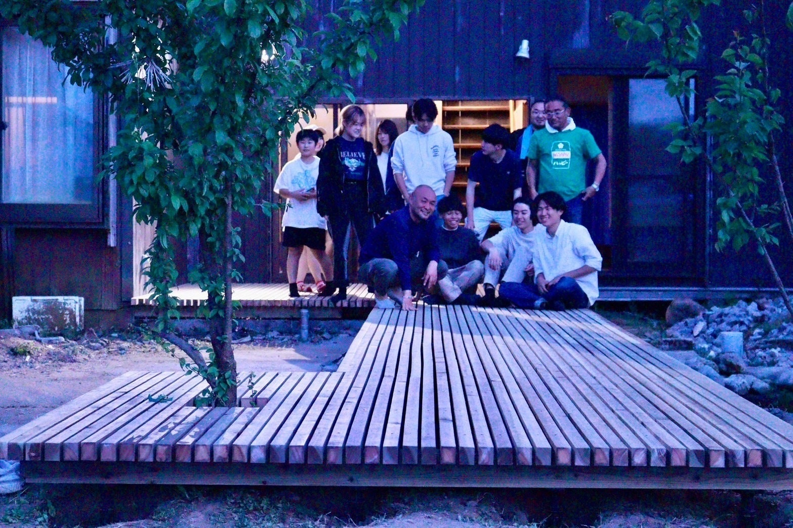 完成したウッドデッキの上で集合写真!