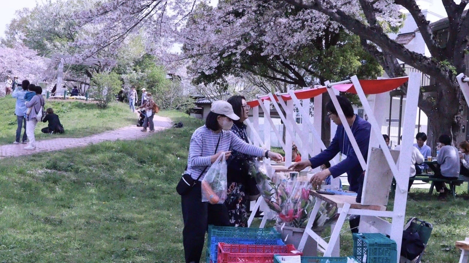 桜の木の下でマルシェ