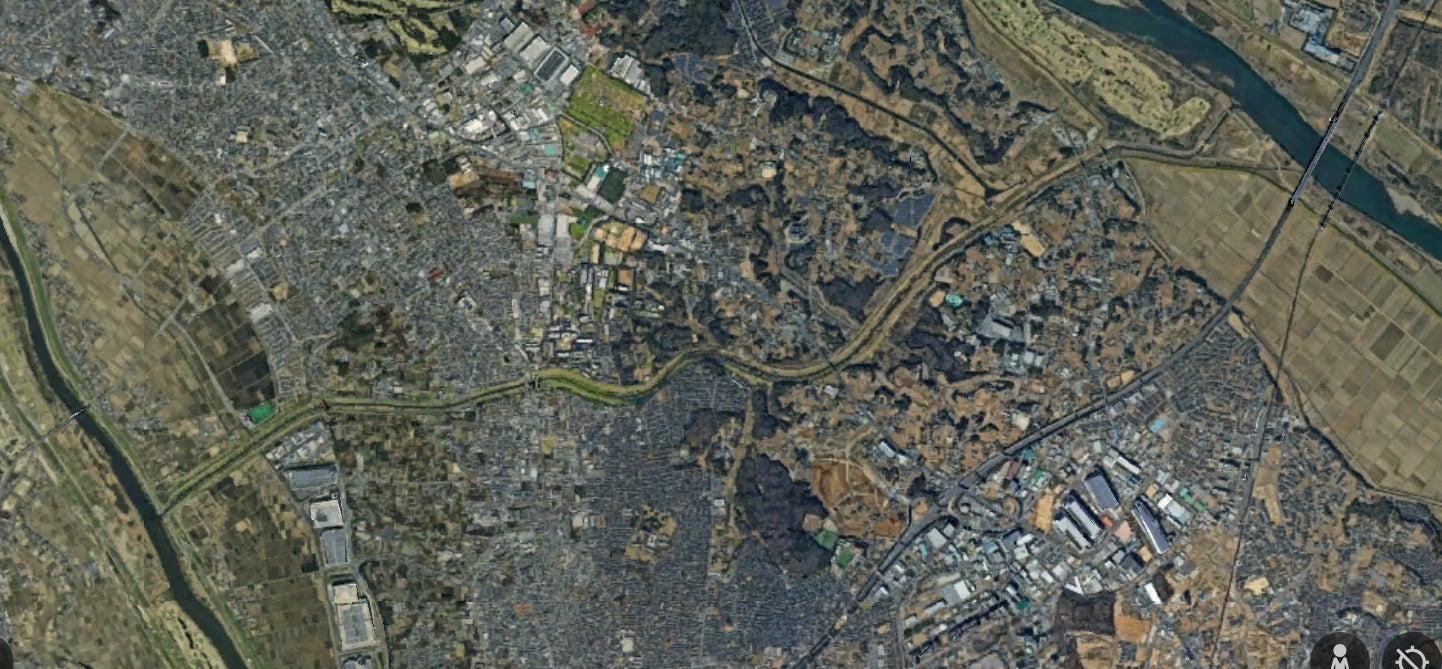中央に見えるのが利根運河(左が江戸川、右が利根川)