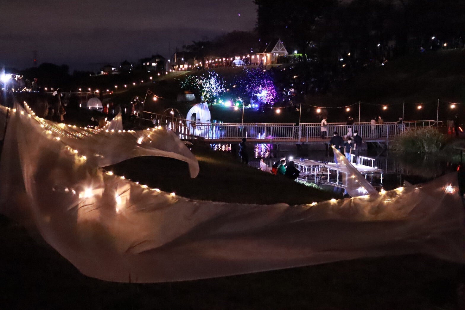 それら2つの会場を光る膜で覆うことで利根運河で隔てられた両岸に一体感を生み出すことを目指します。