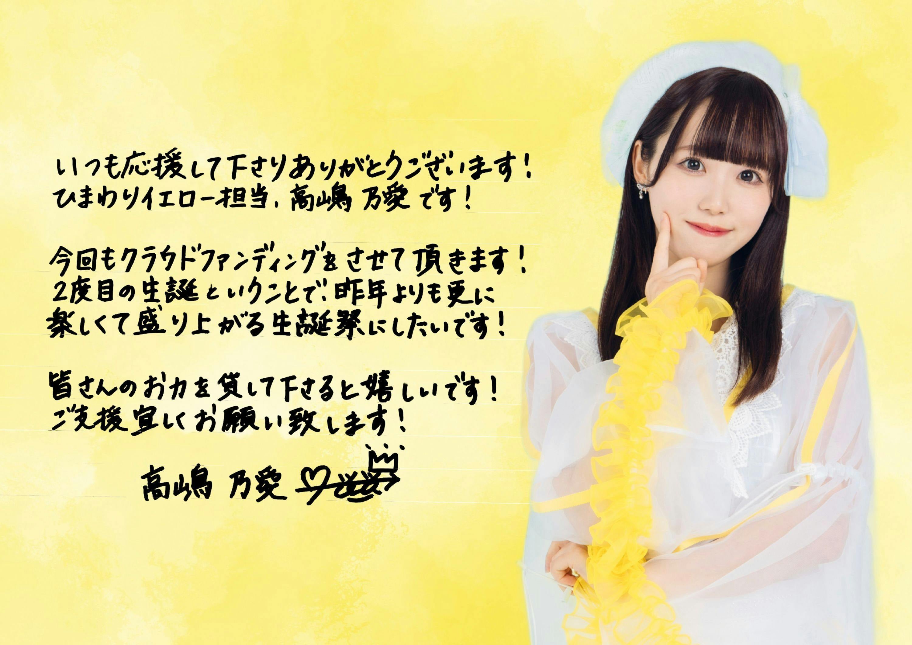 ご支援いただいた金額に応じてリターン品に加え、より豪華な生誕祭を開催できるよう内容を調整させていただきますので、ご理解頂けますと幸いです。