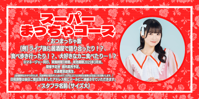 (例)ライブ後に居酒屋で語り合ったり!?、食べ歩き行ったり!?、大好きなカニ食べたり…!?※マネージャー同行、実施時間1時間、有効期限2025年3月末、開催予定地 都内某所予定、交通費別途発生(会場費等はかかりませんが、お食事等の会計が2人合わせて1万円以上になる場合は差額のお支払いをお願いします。)