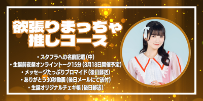 ご支援いただいた金額に応じてリターン品に加え、より豪華な生誕祭を開催できるよう内容を調整させていただきますので、ご理解頂けますと幸いです。