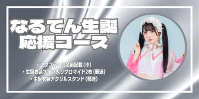 ・スタフラへの名前記載(小・支援時、必ず備考欄に掲載を希望されるお名前をご記入ください)・生誕衣装サイン入りブロマイド2枚(後日郵送)・生誕衣装アクリルスタンド(後日郵送)