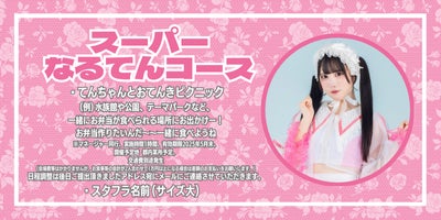 ・てんちゃんとおてんきピクニック(例)水族館や公園、テーマパークなど、一緒にお弁当が食べられる場所にお出かけー!お弁当作りたいんだ~~一緒に食べようね※マネージャー同行、実施時間1時間、有効期限2025年5月末、開催予定地 都内某所予定、交通費別途発生(会場費等はかかりませんが、お食事等の会計が2人合わせて1万円以上になる場合は差額のお支払いをお願いします。)日程調整は後日ご提出頂きましたアドレス宛にメールにご連絡させていただきます。・スタフラへの名前記載(大・支援時、必ず備考欄に掲載を希望されるお名前をご記入ください)