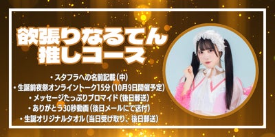 ・スタフラへの名前記載(中・支援時、必ず備考欄に掲載を希望されるお名前をご記入ください)・生誕前夜祭オンライントーク15分(10月9日開催予定)・メッセージたっぷりブロマイド(後日郵送)・ありがとう30秒動画(後日メールにて送付)・生誕オリジナルタオル(当日受け取り、後日郵送)