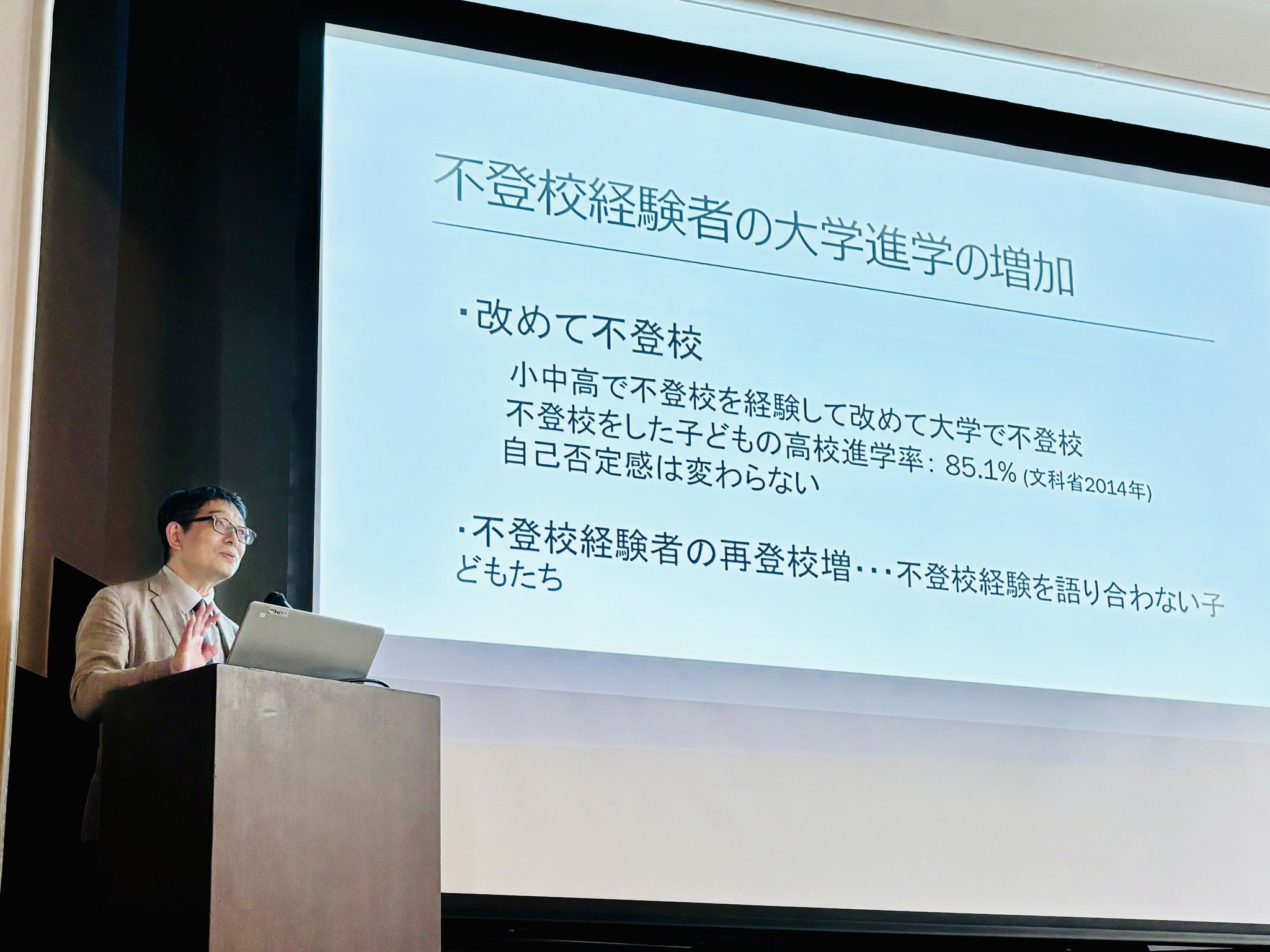 こんばんは!クラウドファンディング学生サポートチームです!最近の活動の報告です。先日、9月28日(土)に雫穿大学の設立25周年を記念したイベント「閉塞感のある社会で生きたいように生きる」を開催し、無事終了しました!いつも応援してくださっている方々、繋がりのある方々やOBOGなどを含め、たくさんの方にご参加いただきました。ありがとうございました!イベントは、雫穿大学と学生たちがお世話になっている方々からのお祝いのメッセージから始まりました。始めはワーカーズコープ連合会の古村理事長に登壇いただき、「深いところで共鳴しあう、応援し合う関係性」という言葉をいただき、次に雫穿大学が交流を深める台湾のデモクラティックスクールの卒業生のヘザー・ヤンさんからは「世界中の都市や国にもあるべき場所」という言葉ををいただきました。ワーカーズコープ連合会の古村伸宏理事長台湾のデモクラティック教育ネットワークCEO ヘザー・ヤンさんその他、国内外のみなさんからのお祝いメッセージのビデオも上映しました!続いて、雫穿大学代表の朝倉景樹より、ご挨拶を兼ねたミニ講演を行いました。講演では、これまでの雫穿大学での学びについてだけでなく、現在クラウドファンディングでも取り組んでいる「大学の不登校」の問題について、その数が急増している原因や、今まさに自己否定感を抱える本人の苦しさなどを改めて訴えました。代表・朝倉による講演その次は、創立時からいのち論の講座を続けていただいている思想家で雫穿大学アドバイザーの最首悟さんによる特別講演をビデオ講演の形でご覧いただきました。(最首悟さんのご体調によりビデオ講演となりました)主に、人との関係や自分自身の意識の仕方としての「二者性」「あなたのあなたとしての私」についてお話くださいました。難しいながらも非常に奥深いお話でした。その後は、雫穿大学25年の歴史を振り返る特別映像や学生とOGのインタビュー映像の上映へとプログラムは進み、学生たちが生きづらさを解きほぐす試みとして積み重ねている自分研究(当事者研究)の発表を行いました。学生による自分研究(当事者研究)の発表最後のプログラムは、文化人類学者でゲイ・アクティビストの砂川秀樹さんをゲストに、代表の朝倉と学生も登壇しての特別鼎談でした。砂川秀樹さんに、その直前のプログラムで披露された自分研究の発表に対するコメントをいただいた上で、雫穿大学における当事者研究の特徴についてなどを話しました。砂川さんからの非常に鋭く的確なご質問もあり、当事者研究の可能性や課題について、深く切り込むことができました。文化人類学者・砂川秀樹さんをゲストに鼎談まだまだ話が尽きない中でしたが、時間を迎え、25周年イベントは無事盛況のうちに終了しました。これまで応援し支えてくださった皆さまへの多大なる感謝の気持ちと、今後も「生き方を創る」学びを続けていく決意を改めて強く感じる時間となりました。ご参加くださった皆さま、応援してくださっている皆さま、大変ありがとうございました!これからもどうぞ雫穿大学の活動を見守ってくださればと思います!
