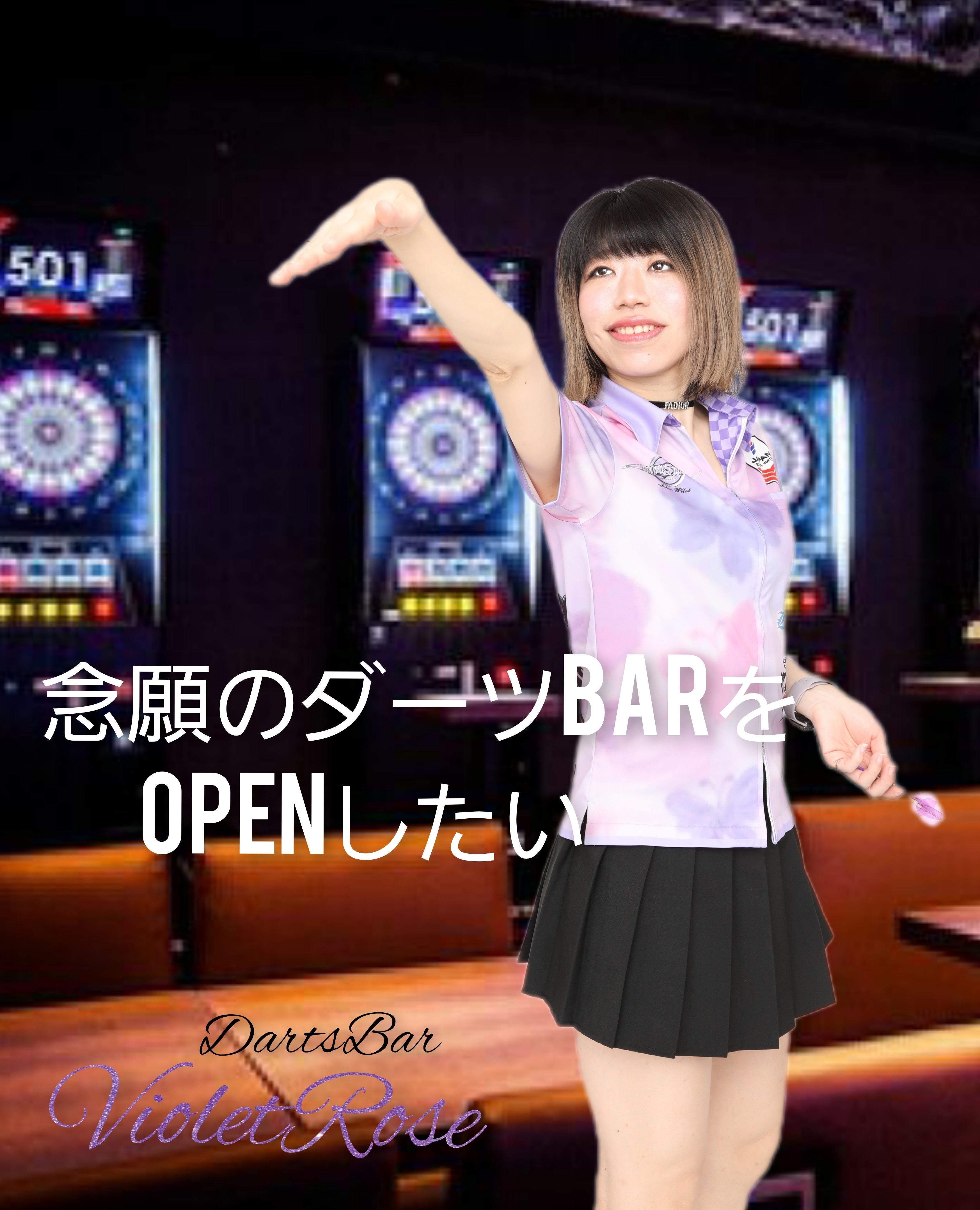 私はSOFT DARTS PROFESSONAL TOUR JAPAN所属プロの袰主綾子と申します。ダーツが好きで、5年ほど前から友人と一緒に楽しんでいました。これまでに様々なダーツバーを訪れ、その雰囲気やコミュニティに魅了されました。私自身もそんな場所を提供したいという夢を持ち続け、ついに自分のダーツバーを開業する決意を固めました。