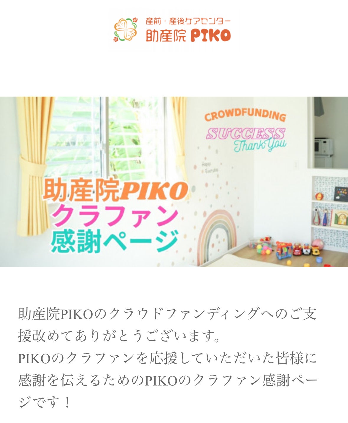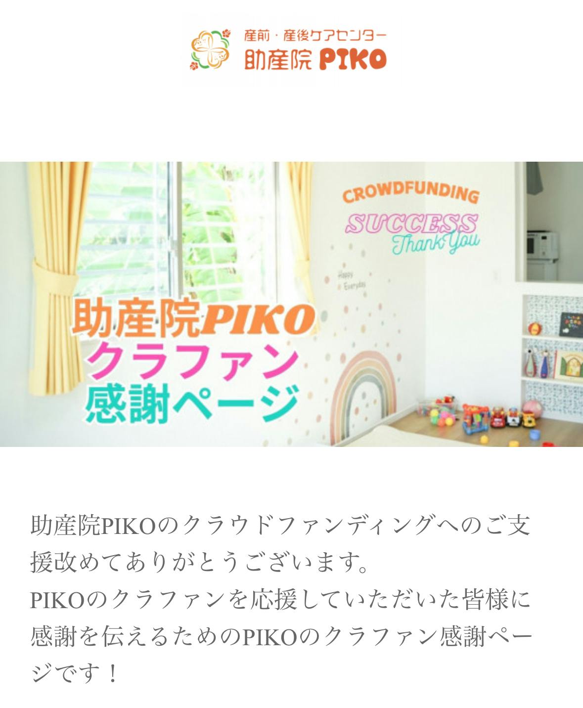 全てのご支援者様にはPIKOのクラファン感謝ページにて、お名前を記載させいただきます。(ご希望者)