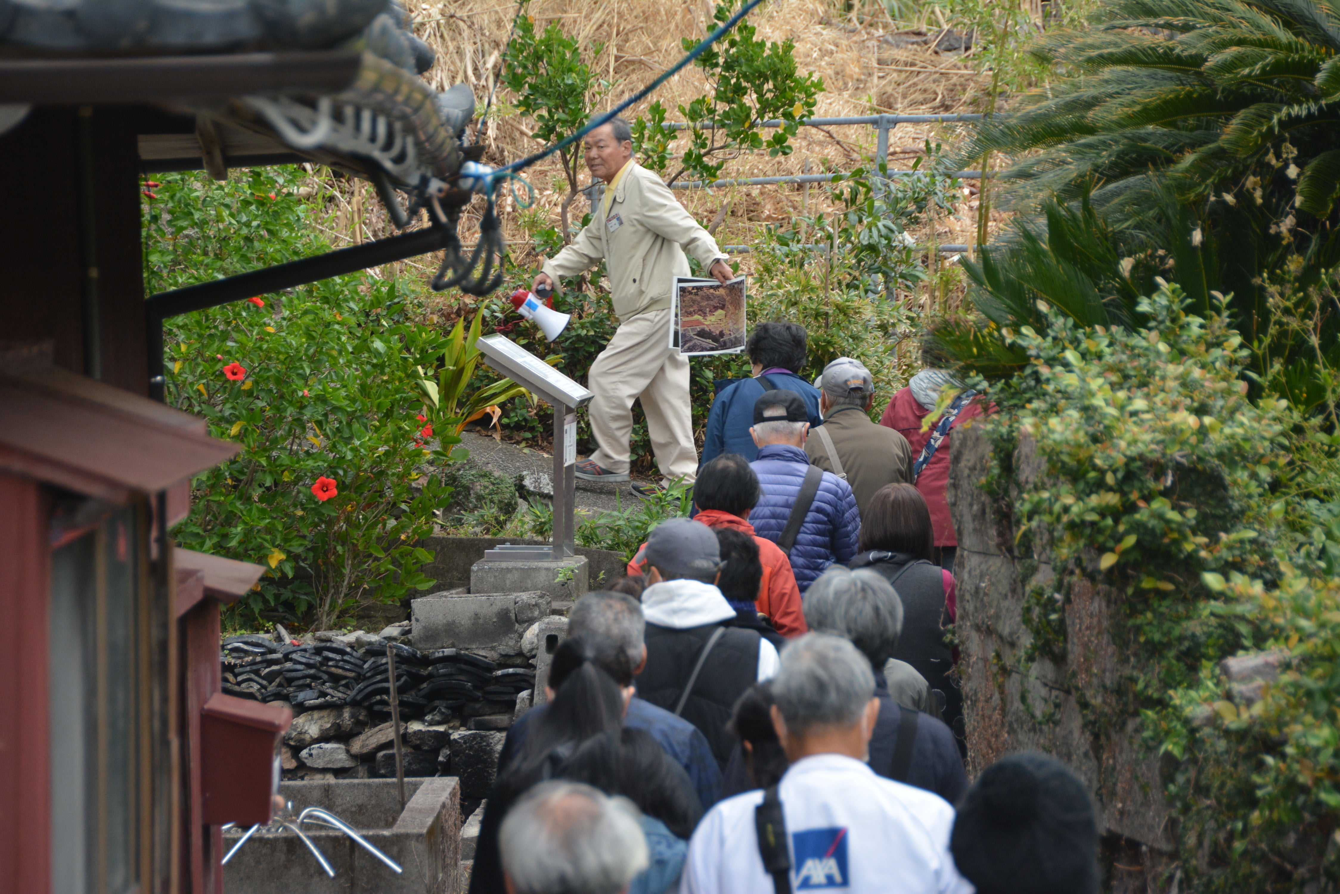 地域住民でリーダー的存在 宮内一朗さんのガイドの様子
