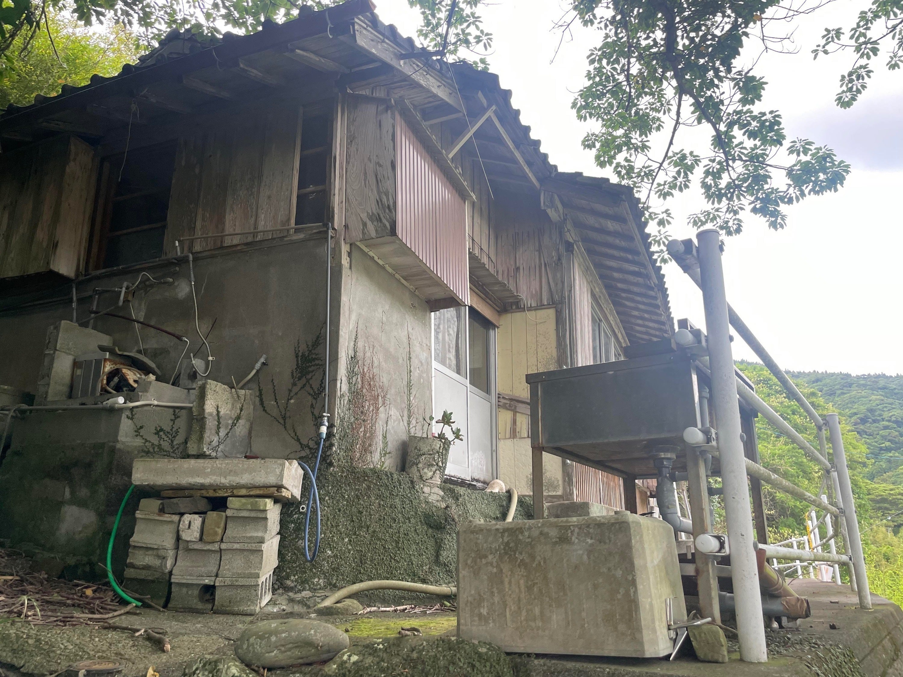 今にも崩れそうな建屋
