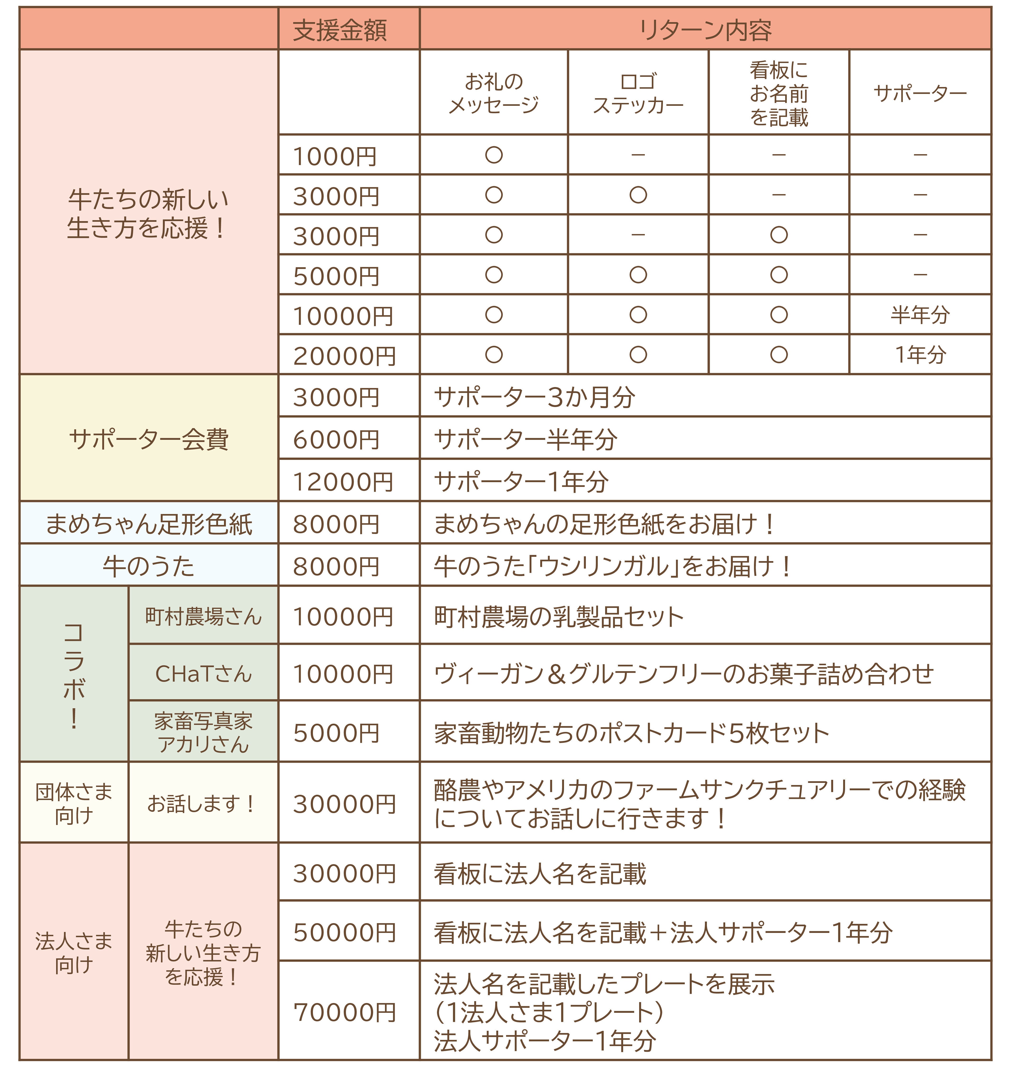※「牛たちの新しい生き方を応援20000円」コースの選択画面で「サポーター半年」と表示がありますが、
