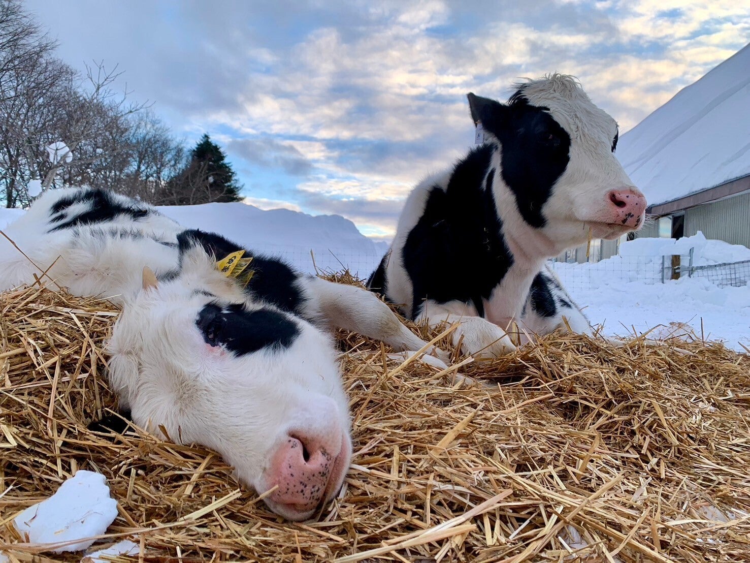 2024/11/18 12:00いつも応援ありがとうございます!関口晴実です。インスタグラムやXを見てくださっている方はすでにご存じかと思いますが、牛たちのかくれ家に2頭目の牛「すけみん」ちゃんがやってきました!すけみんちゃんもまめちゃんと同じフリーマーチン。まめちゃんより5カ月お姉さんです。妊娠ができないフリーマーチンのすけみんちゃんは乳牛として生きていくことができず、さらに複雑な事情があり肥育牧場にも行くことができなかったそうです。行き場もなく牧場で過ごしていたところ、牛たちのかくれ家のことを知った牧場のスタッフさんが連絡をしてくださいました。行き場を失ってしまった場合、そのままその短い一生を終わらせてしまう、ということも少なくありません。畜産動物だからと諦めるのではなく、一つの命として大切にしようとする思いに共感しました。そして、すけみんちゃんのことを話す牧場の方々の言葉には、その一つ一つに牛への愛を感じました。そんな素敵な牧場で育ったすけみんちゃんは人が大好き、とっても元気でお転婆な女の子です。控えめでおしとやかな性格のまめちゃんとは少しタイプが違いますが、すけみんちゃんが来てから10日。日に日に仲は深まり、今は良き姉妹の雰囲気が出ています。人が大好きなすけみんちゃん。よく人にも寄りそってくれるので、セラピーカウとしてもその魅力を発揮してくれそうです。すけみんちゃんがこれからたくさんの人に可愛がってもらえる日々が楽しみです。今後ともまめちゃんとすけみんちゃんをよろしくお願いいたします!*************************すけみんちゃん引き取りの裏話すけみんちゃん引き取りの日程は、サポーターの方々へ事前に共有させていただきました。実は、実際の引き取り予定日は1週間早かったのです。当別町から遠く離れた鹿追町までお迎えに行くためのトラックの故障が原因で延期となり、ちょうど雪の降る日にお迎えに行くことになってしまいました。サポーターの方々にはドキドキさせてしまいましたが、無事大きなトラブルもなく連れて来ることができて安心しました。温かく見守ってくださり、ありがとうございました!************************** もっと見る