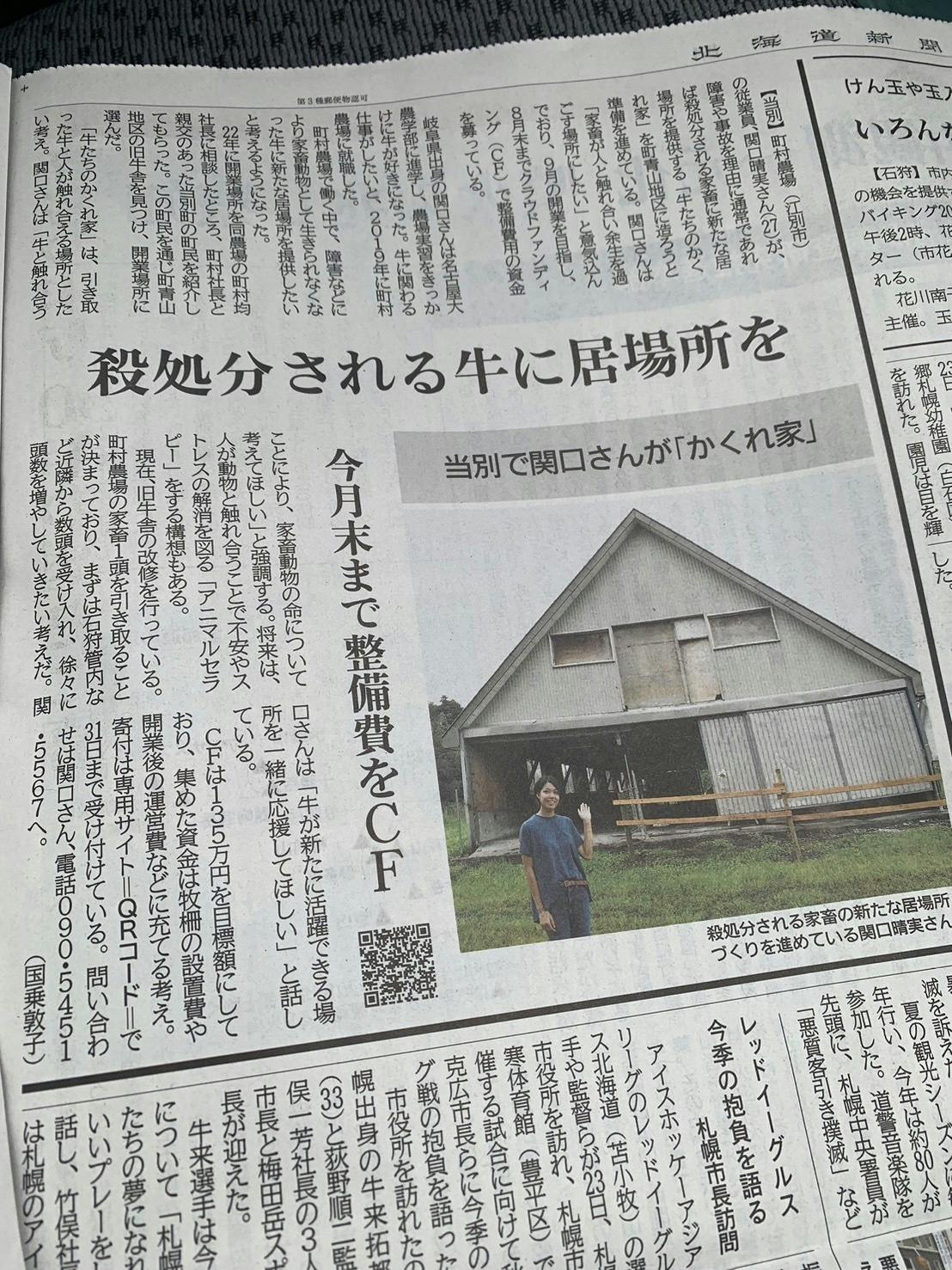 昨日24日の北海道新聞(石狩・当別版)にて、
