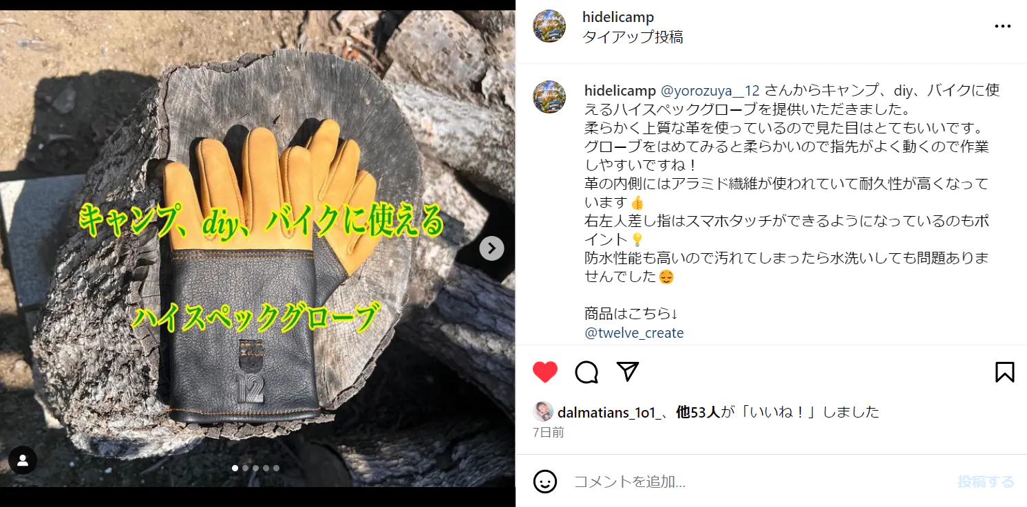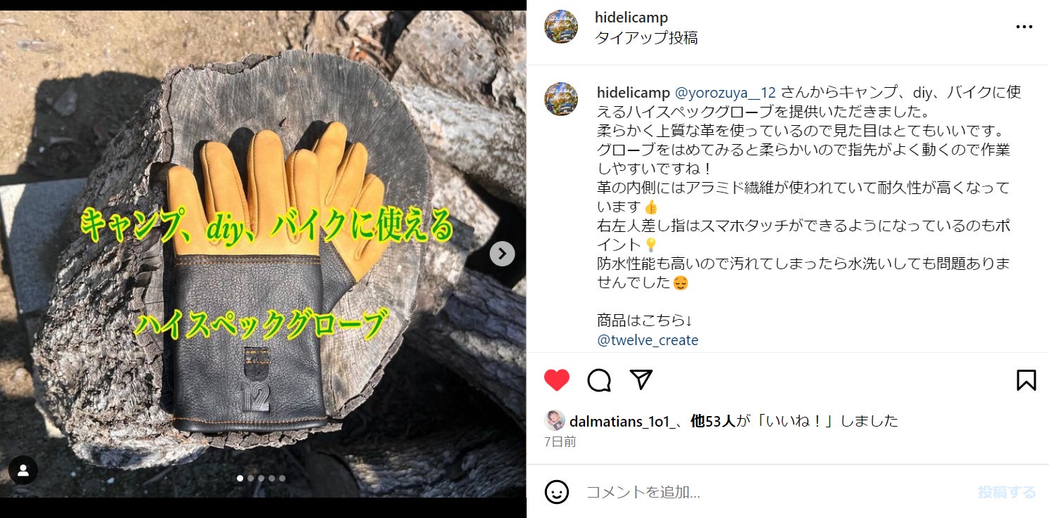 生まれたてほやほやなので、使用感などを公開ページには詳細に盛り込みましたが、他にももうちょっとお伝えしたいと考えて、多くのInstagramで人気の方々に「12マルチグローブ」使用していて欲しいです!と募集しまして、実際に使ってSNSに公開していただいております。