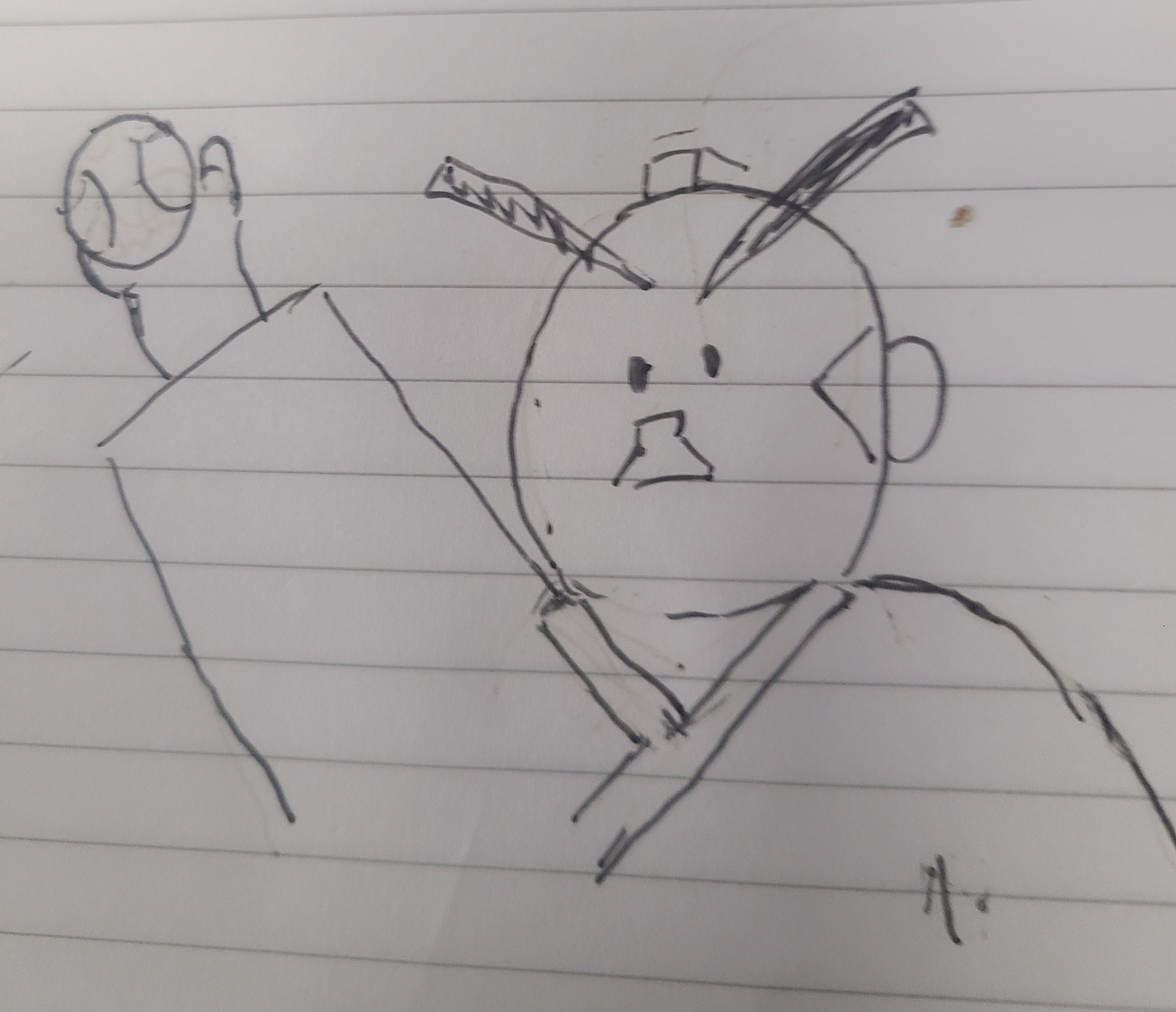 ボールを投げる殿様を書いて見ました。犬のトマトは取って来るのか?