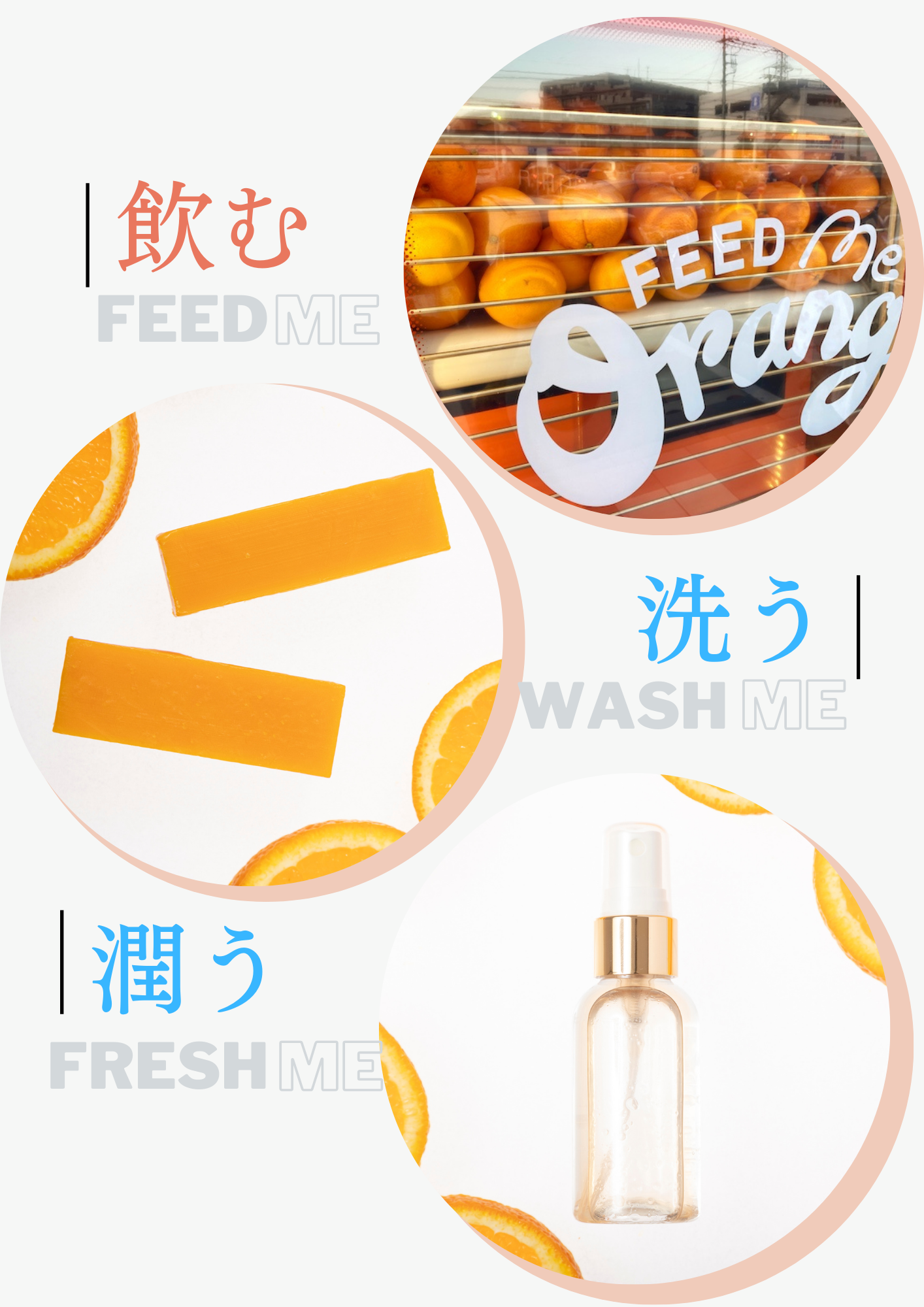 輸入品のオレンジなのでWAX等の農薬が気になる方も居られると思いますが、輸入された段階で洗浄し自動販売機に入れられています。その果皮を蒸留したエッセンシャルオイルからは、若干の農薬成分が検出されました。しかし、保健所に指導を求めたところ人体に影響があるほどの数値でもなく、化粧品として使用するにあたっては問題となる成分は検出されていないとのお墨付きを頂いています。安心して使用していただけます。
