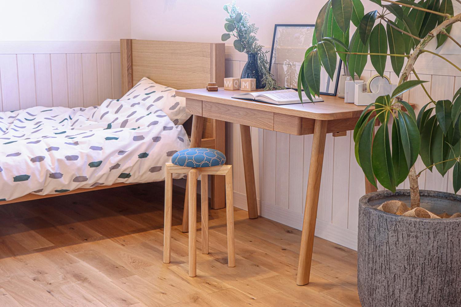 デスクに合わせて勉強や仕事をする時にも便利に使えます。スツールタイプなので使わないときはデスク下に収納すれば生活する導線の邪魔になりません。