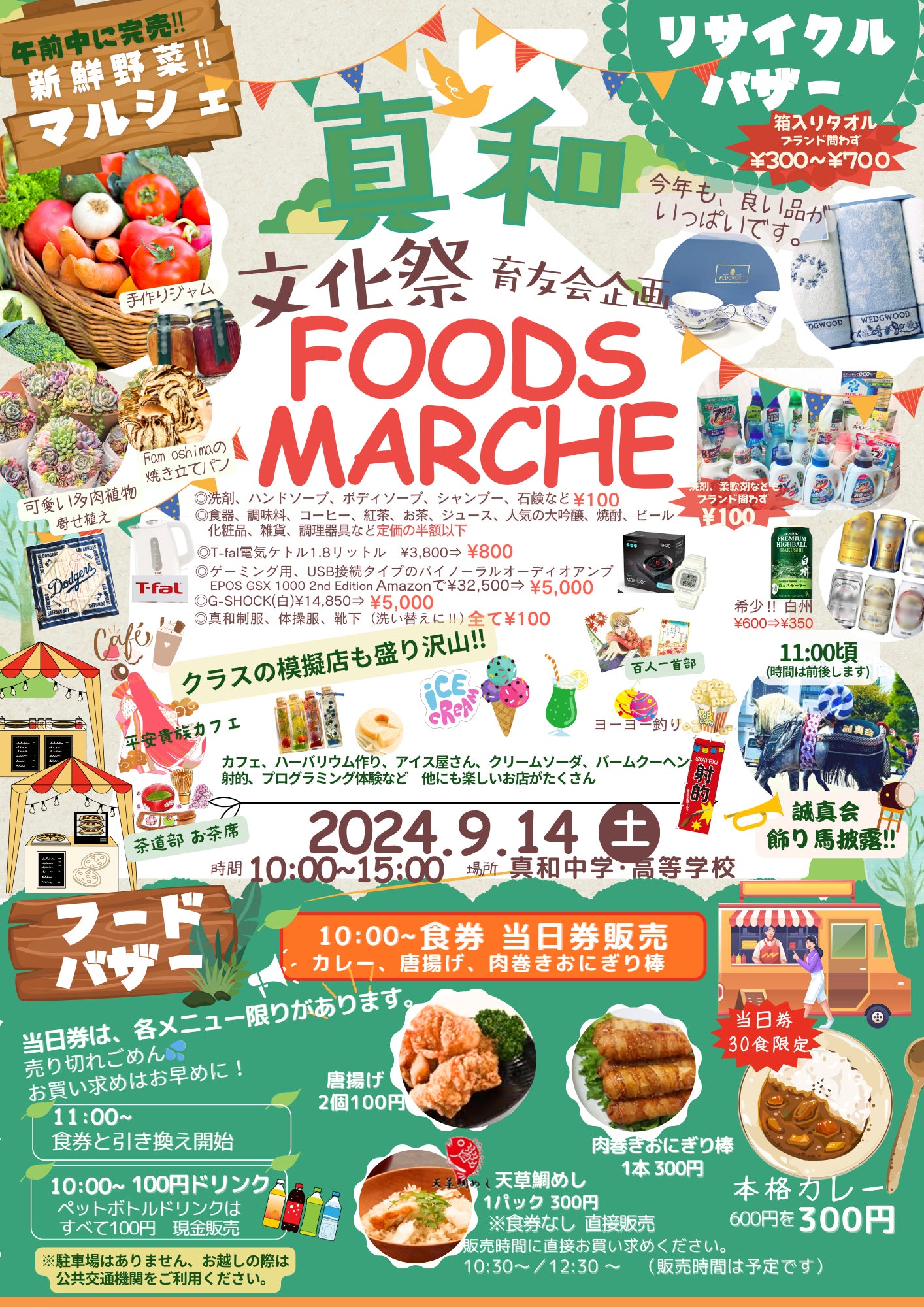 2024/09/12 15:45いよいよ、今週末の14(土) 真和文化祭2日目生徒の皆さんの、模擬店と育友会企画フードバザーとリサイクルバザーが開催されます。生徒の皆さんの模擬店も、とても楽しそうなものばかりです。今年は、秋の例大祭と日程も重なり 真和OBの誠真会の飾り馬も来校して、にぎやかな文化祭になりそうです。お近くの方は、ぜひ足をお運びくださいませ。リターンに関しましては、文化祭終了後、準備が整い次第 メッセージ、発送等行ってまいります。改めまして、ご支援誠にありがとうございました。今後とも、真和中学・高等学校をよろしくお願いいたします。育友会会長 野村 宗靖 もっと見る