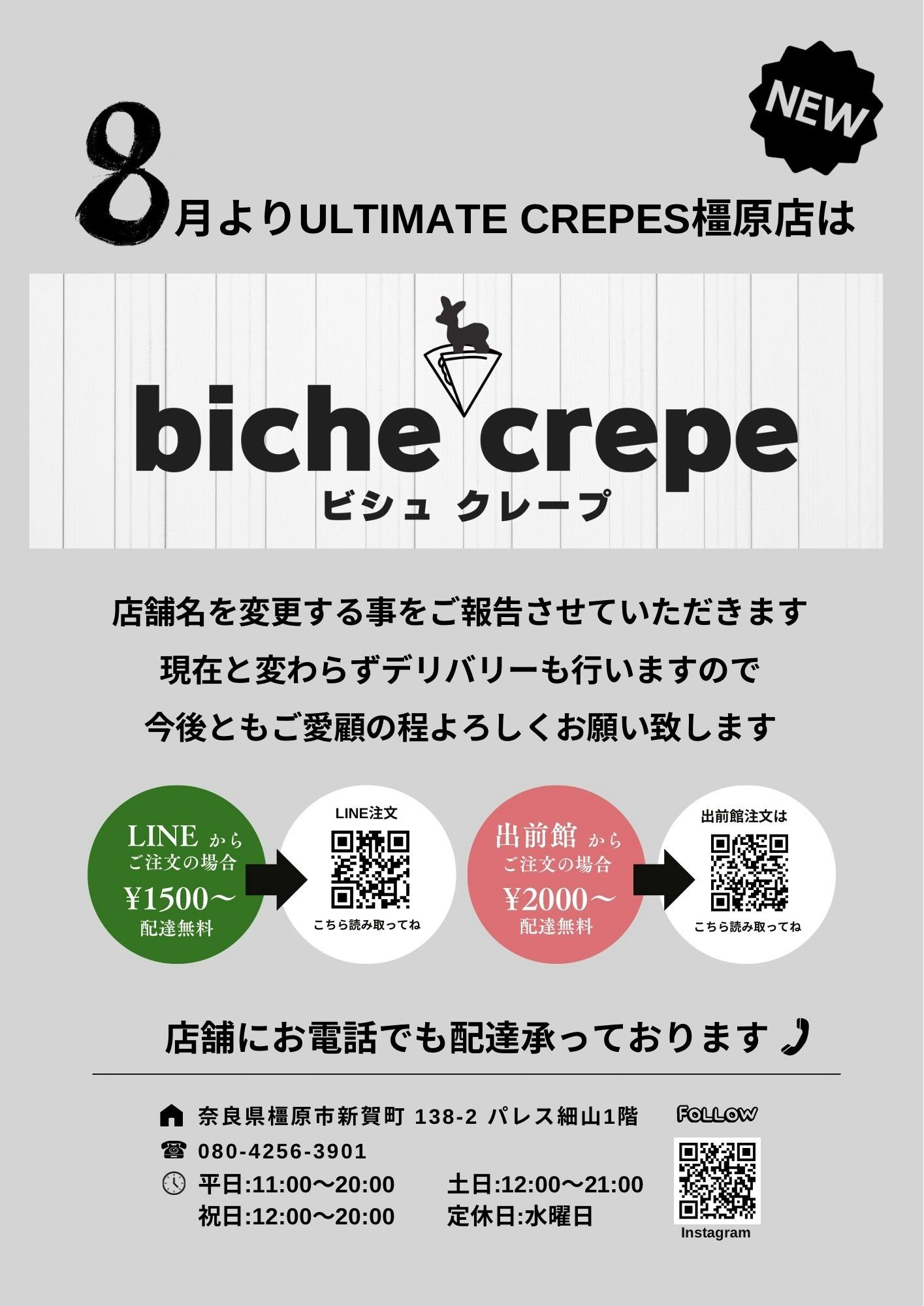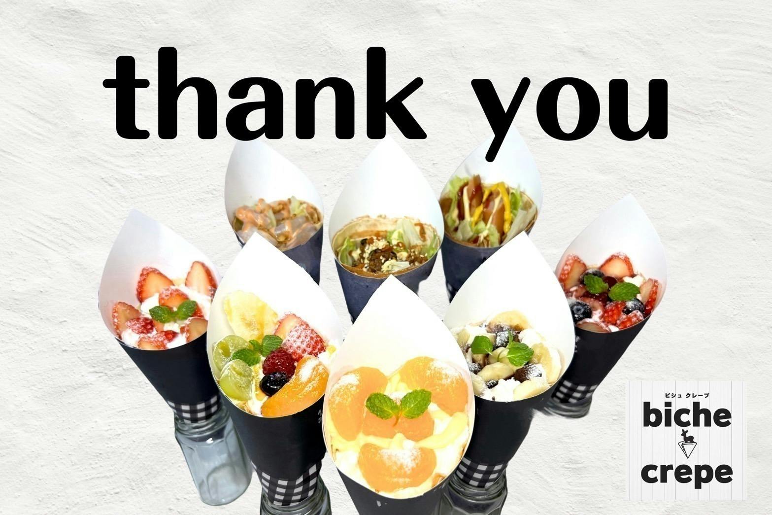 全てのクレープに無料トッピングしている - と言う事から思いを込めてビシュクレープにしました。
