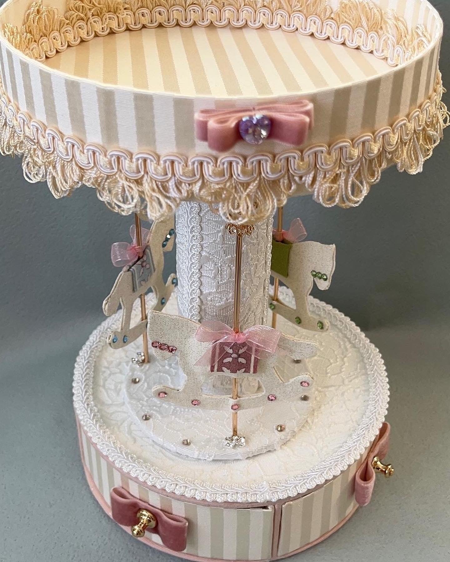 自分を喜ばせる為に作ったメリーゴーランドが反響を呼び、それに続く『夢かわカボチャな馬車』は、病床中に制作したものです。