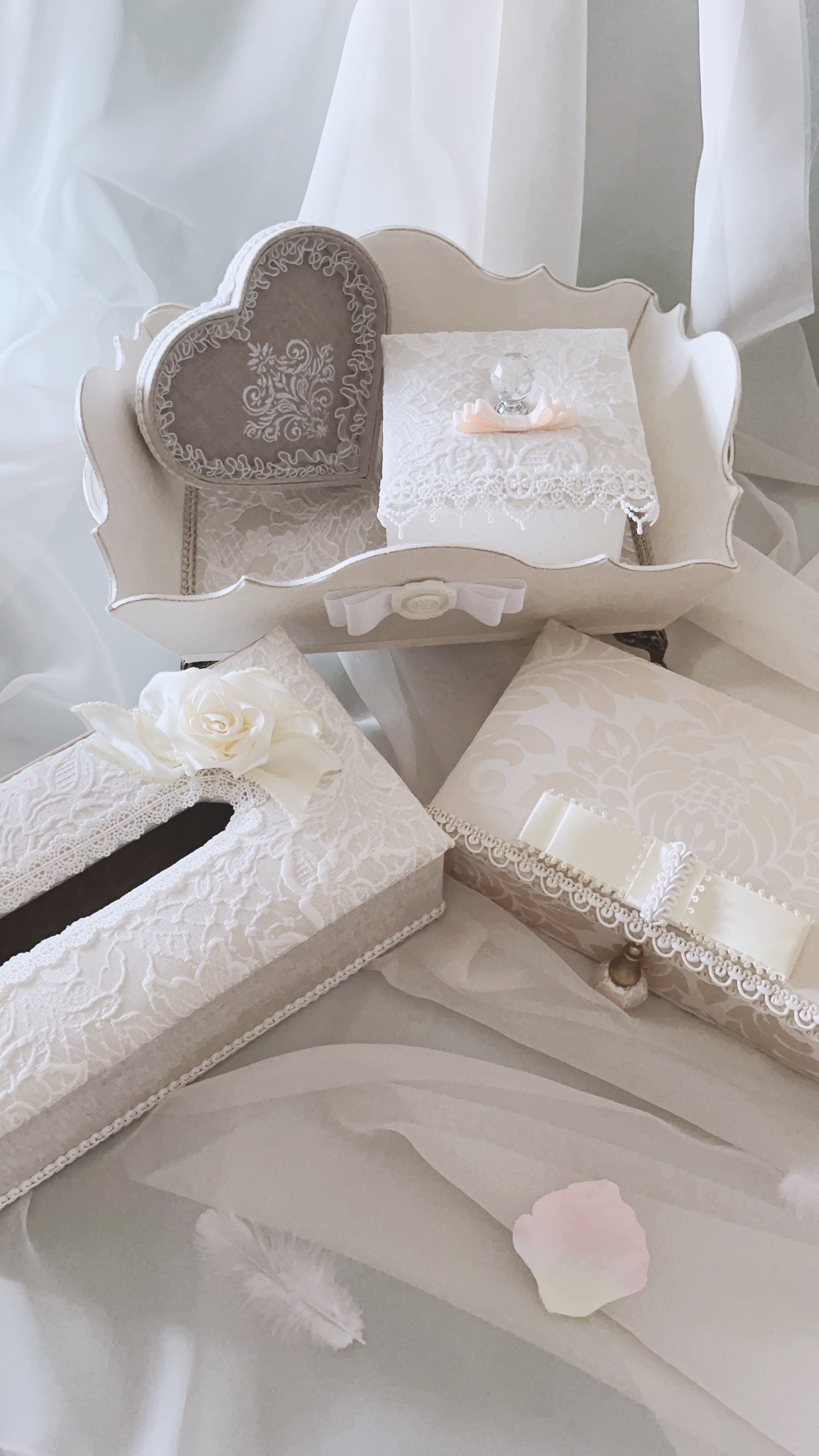 ・ティッシュBOX…こちらもカルトナージュでは人気の高いインテリアです。