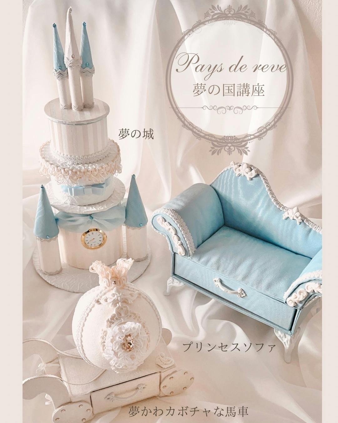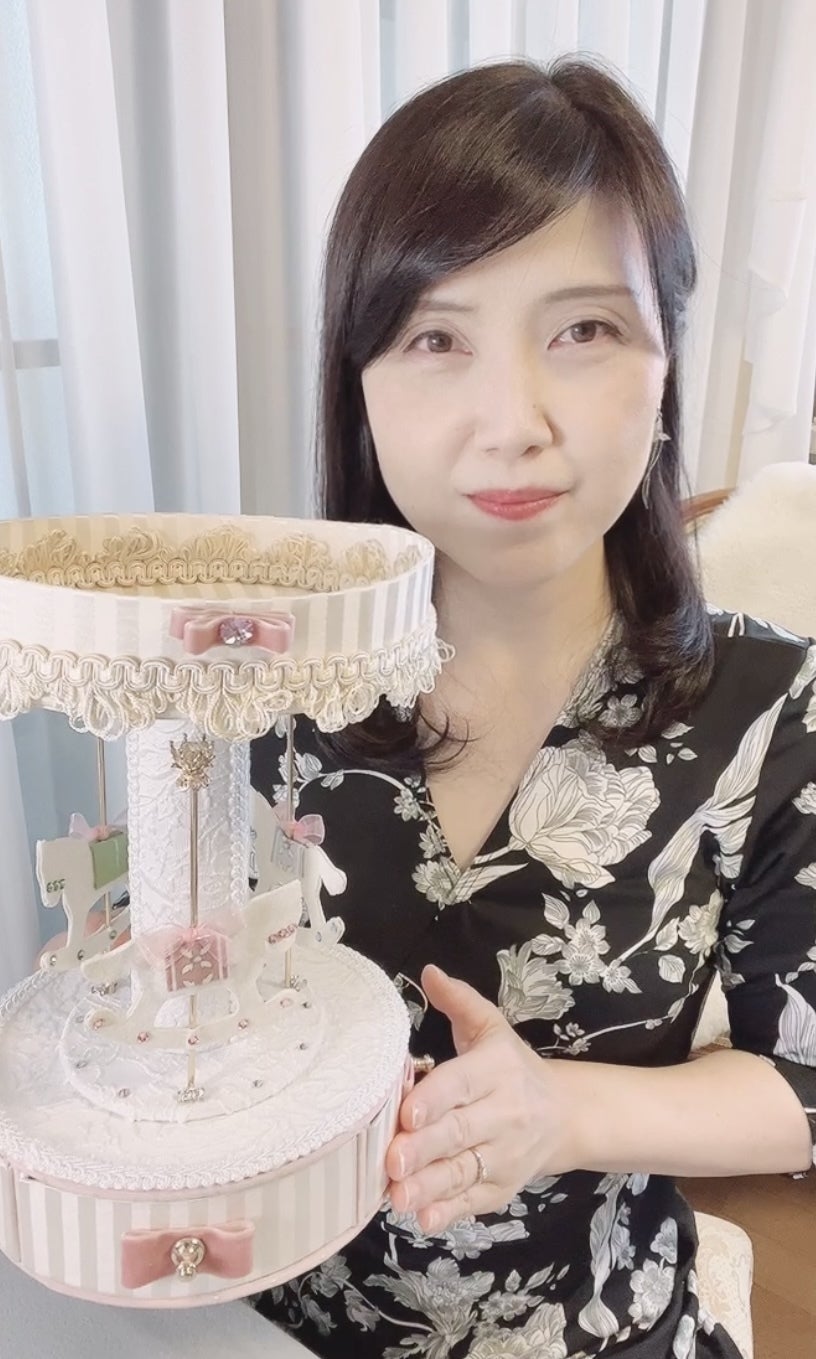主に四角い箱を作る教室が多い中、形に囚われず、自由に作りたい想いからカルトナージュを独学で学びました。