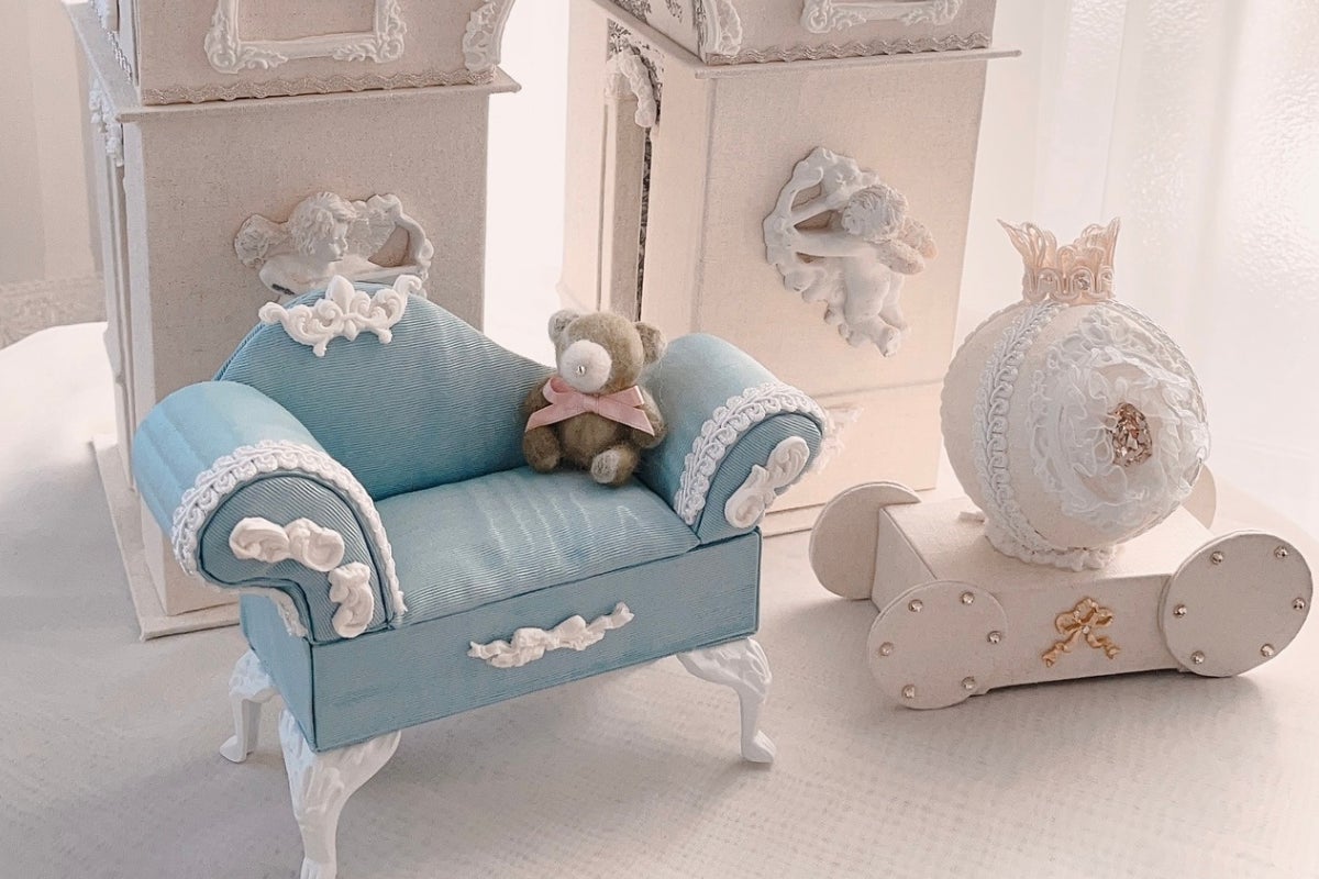 幾つになっても可愛い物が好き!心ときめく物語の様な世界を形にしたいと思い、厚紙と布を使って夢の国を作っています。
