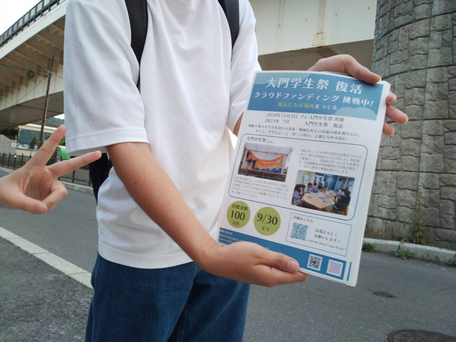 先日、総務班のメンバーを中心に会場の近くの函館の大門エリアでクラウドファンディングの達成に向けてチラシを配布させていただきました!