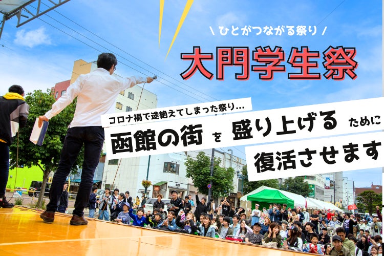 大門学生祭は函館の大学生・地域をつなぐだけではなく、時代をもつなぐそんなお祭りになると信じています。函館に暮らす大学生がもっとワクワクを感じられるように、地域の人が若い大学生からパワーをもらえるようなそんな街を目指すための第一歩としてのこの企画、皆さま応援よろしくお願いします。