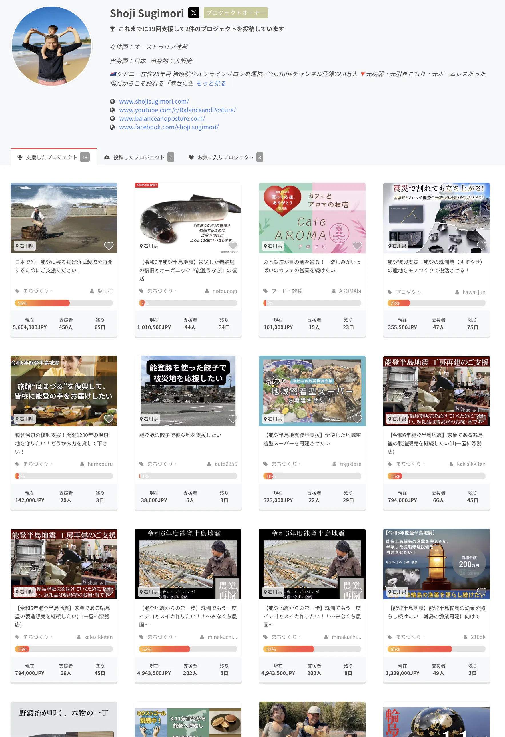 2024/08/31 08:07支援者の皆さま、おはようございます。シドニーのしょうじです。僕は先日、無事に日本からシドニーに戻ってきて、今、コマネズミのようにチョコマカと動き回っています。日本でも仕事、シドニーでも仕事頼ってくださる人がどこにでもいること、心の底から(ありがたいなぁ〜)とシミジミ噛み締めているところです^_^ さて、今日メールをさせていただいたのは他でもないこちらの画像が出来上がったので、皆さんに見ていただこうと思いまして。やっぱりプロのカメラマンさんが撮ってくれたものだから美しい!その躍動感や幸せに満ちた空気感まで伝わってくる気がするのは僕だけでしょうか?そして今日僕が一番みなさんに言いたいこと、、、この笑顔、、、皆さんが作ったんですよ!皆さんのサポートがあったおかげで、参加者さんたちに笑顔と希望、心から安心できる時間と空間をプレゼントできたんです! 最終的に...・目標額の223%・トータル938000円もの応援資金が集まりましたm(_ _)m 皆さまの優しさと暖かさに触れ、しょうじはこれを書きながらもウルウルっときています(泣き虫なんですボク笑)。ですので、ジックリとこの写真たちを眺めて(あ〜、俺たちの支援がこの人たちを幸せにしたんだな〜)と噛み締めていただけると幸いです。 ただいま経費を集計中で近い将来、石川県への支援金がハッキリ出ると思います。また動画も鋭意製作中なので(この作成資金もみなさんからいただきました!)、出来上がり次第またお知らせさせていただきますね! ではでは〜、こちらオーストラリアは明日は父の日いつもバタバタして息子と遊んであげられないので、今週末ぐらいはゆっくりしてみよう、、、かな?笑(がんばってはみます笑)しょうじ もっと見る