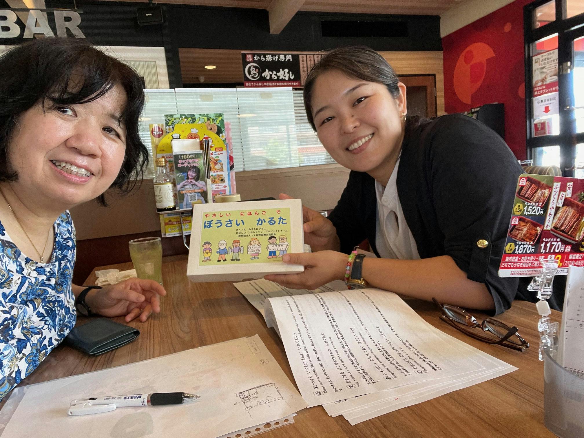 この「やさしいにほんごでぼうさいかるた」は防災科研の特別研究員の取出さん、上田さん、またつくば市内の消防士さん、防災士さんに見ていただきながら作成しました。皆の気持ちが詰まっています。引き続きこのかるたをつくば市内の小中学校の子どもたちに届けられるよう、がんばります。