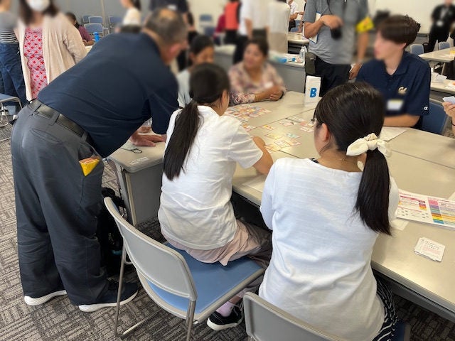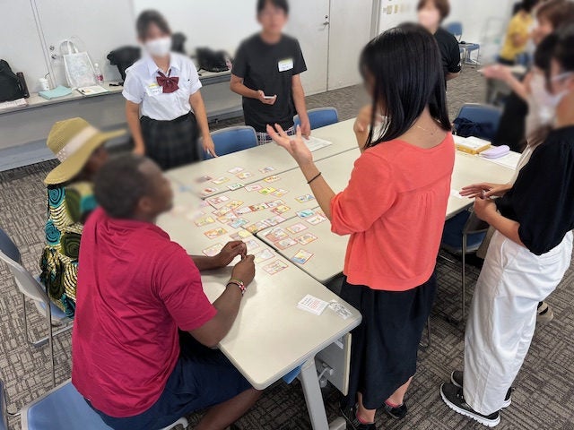 午後からは外国人12名も参加し、中高生と一緒に防災かるたや、「100均で防災バッグに入るもの」のクロスワードパズルなどを楽しみました。