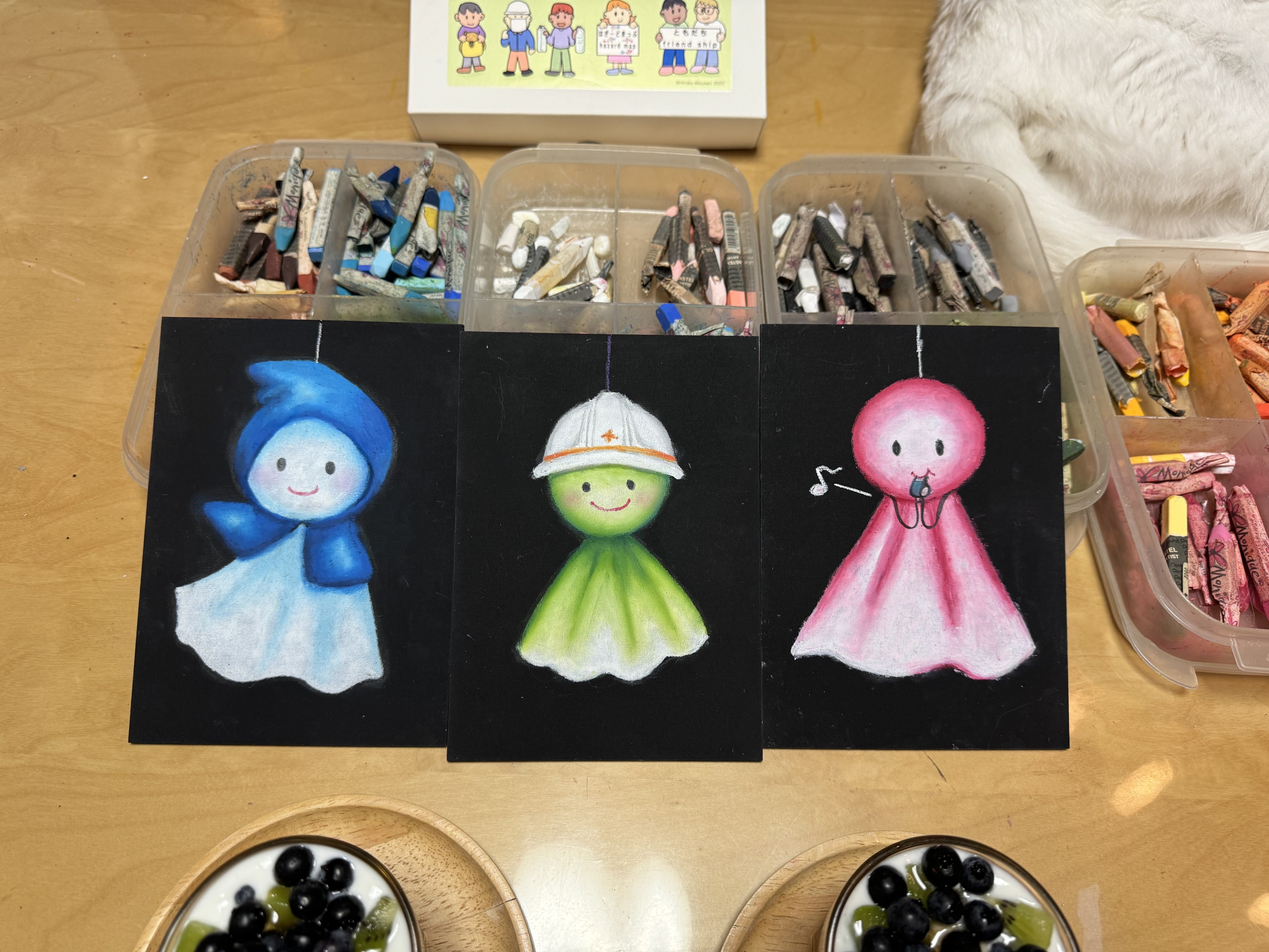 最後にイラスト仲間で理香さんのチョークをお借りして「防災てるてるぼうず」を作成しました。これから防災講座に活用させていただきたいと思います。