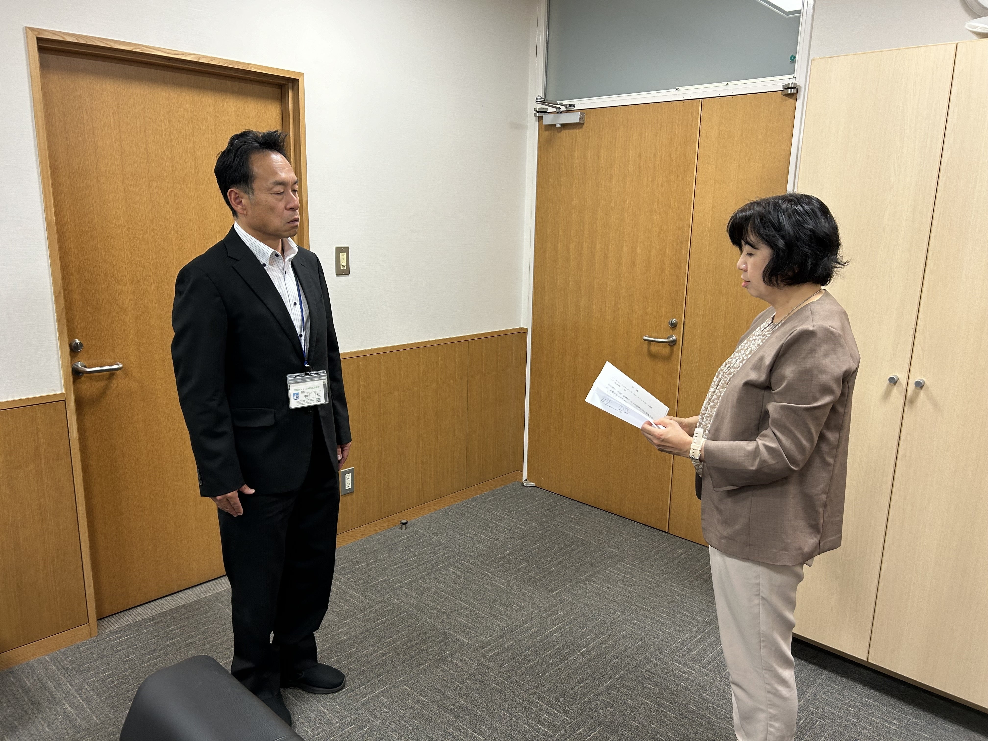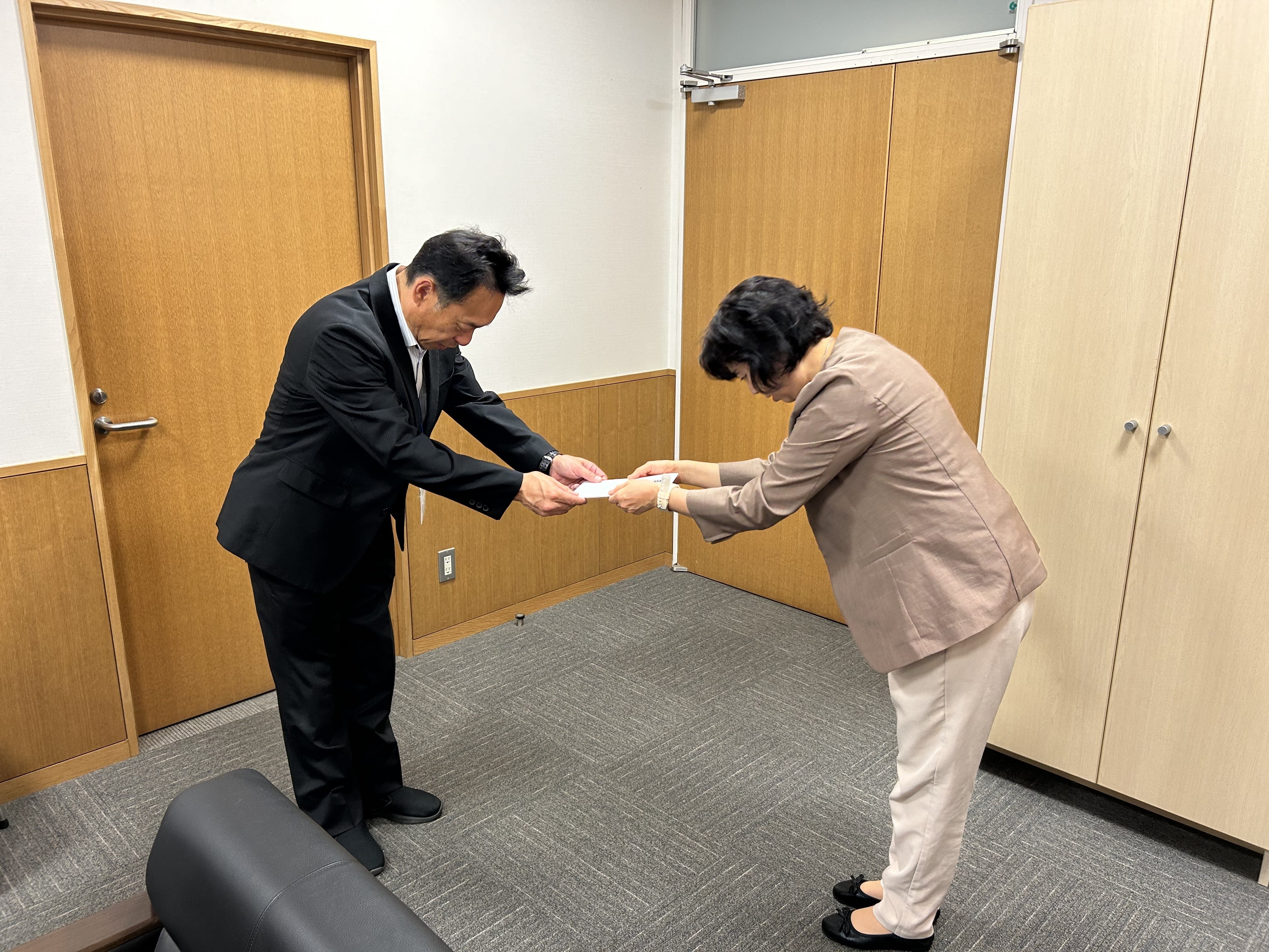 本日は県立つくば特別支援学校へかるたを届けてまいりました。ぜひ、皆様で遊んでいただき、防災について学んでいただきたい旨もお話ししました。