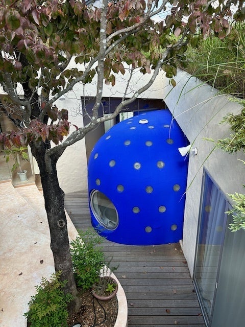 この青い部分はなんとお風呂!それも水中出産ができるお風呂なのです!