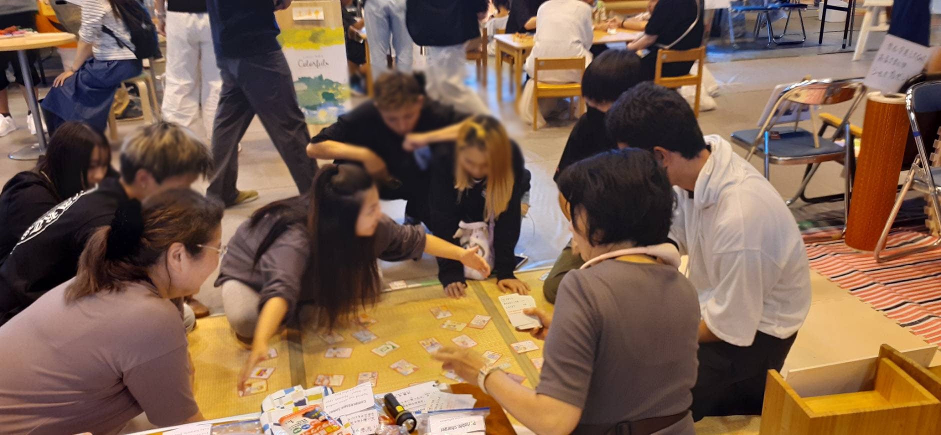 ご支援いただいた皆様 活動報告が遅れてしまい申し訳ありません!毎日リターンのメッセージカードやかるたのご送付に明け暮れておりました。皆様のお手元に届きましたでしょうか。ぜひ、ご活用いただけたらと思います。まだ来ないよーという方、申し訳ありません。がんばります。ご一報いただけると助かります。学校や団体へ送ってほしいというご希望のあったご支援者様には先様へこのかるたのご説明をして、ご寄贈をご承諾いただいてからになりますのでもう少々お待ちください。さて、その一方で私はこの「やさしいにほんごでぼうさいかるた」の普及活動も進めております。9月23日は桜体育館にて「第3回 不登校・多様な学び つながる縁日」に参加してきました。常磐大学の海老名先生のストレスチェックのブースを間借りさせていただき、「やさしいにほんごでぼうさいかるた」の体験を行いました。やさしい日本語は「だれもが理解できる易しいことば」であり「相手に寄り添う優しいことば」でもあります。また、防災を通じて「自分をまもること」を学んでほしいと思っています。なにより、かるた遊びは楽しいです!たくさんの方にご来場いただきありがとうございました。