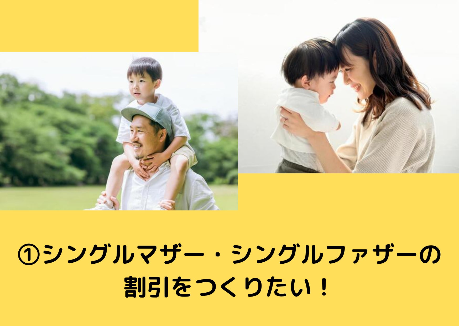 ①『シングルマザー・シングルファザー割引』を作りたい!